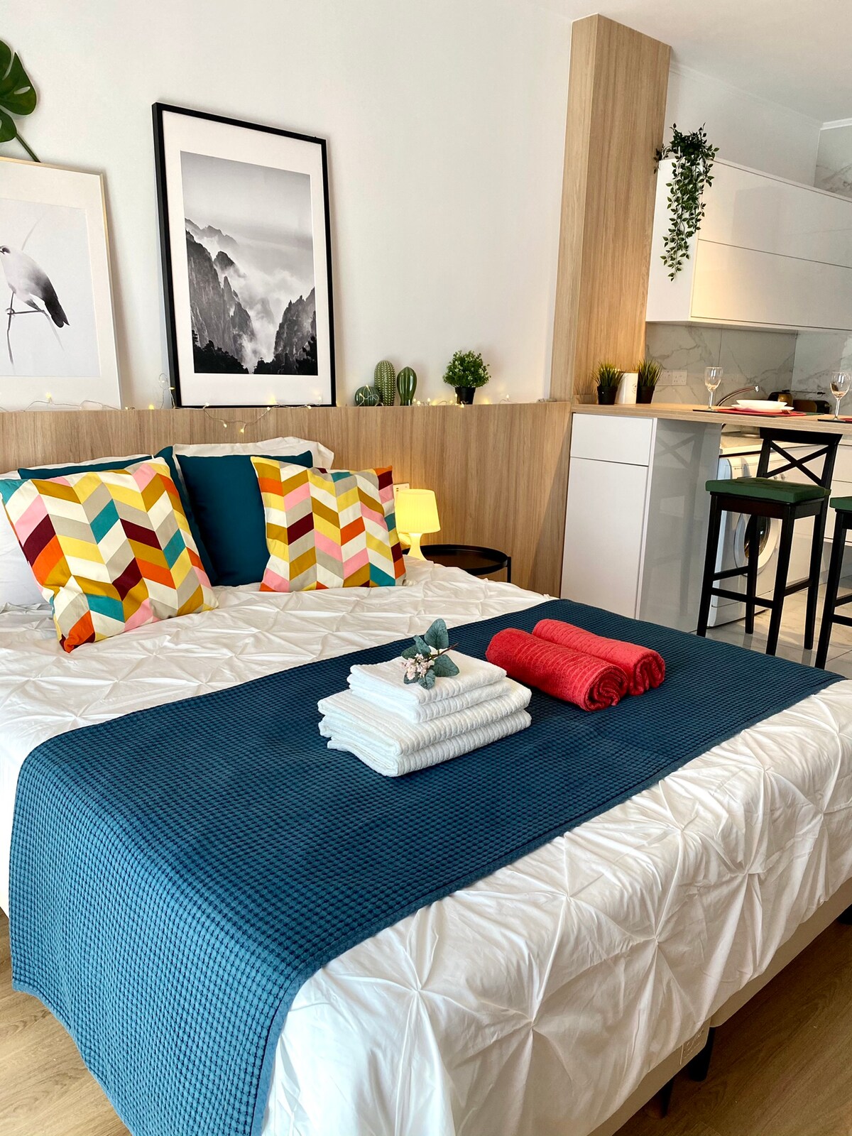 This sunny seafront apartment with easy mobility is located in the heart of the business and leisure district. Designed in the summer '19 by the host Architect in collaboration with a contemporary artist. The fusion of art & architecture in the apartment is felt throughout every object and detail. Intention: To redefine luxury by surrounding guests with collectors' items, green, beautiful colors art so the accommodation becomes an experience.