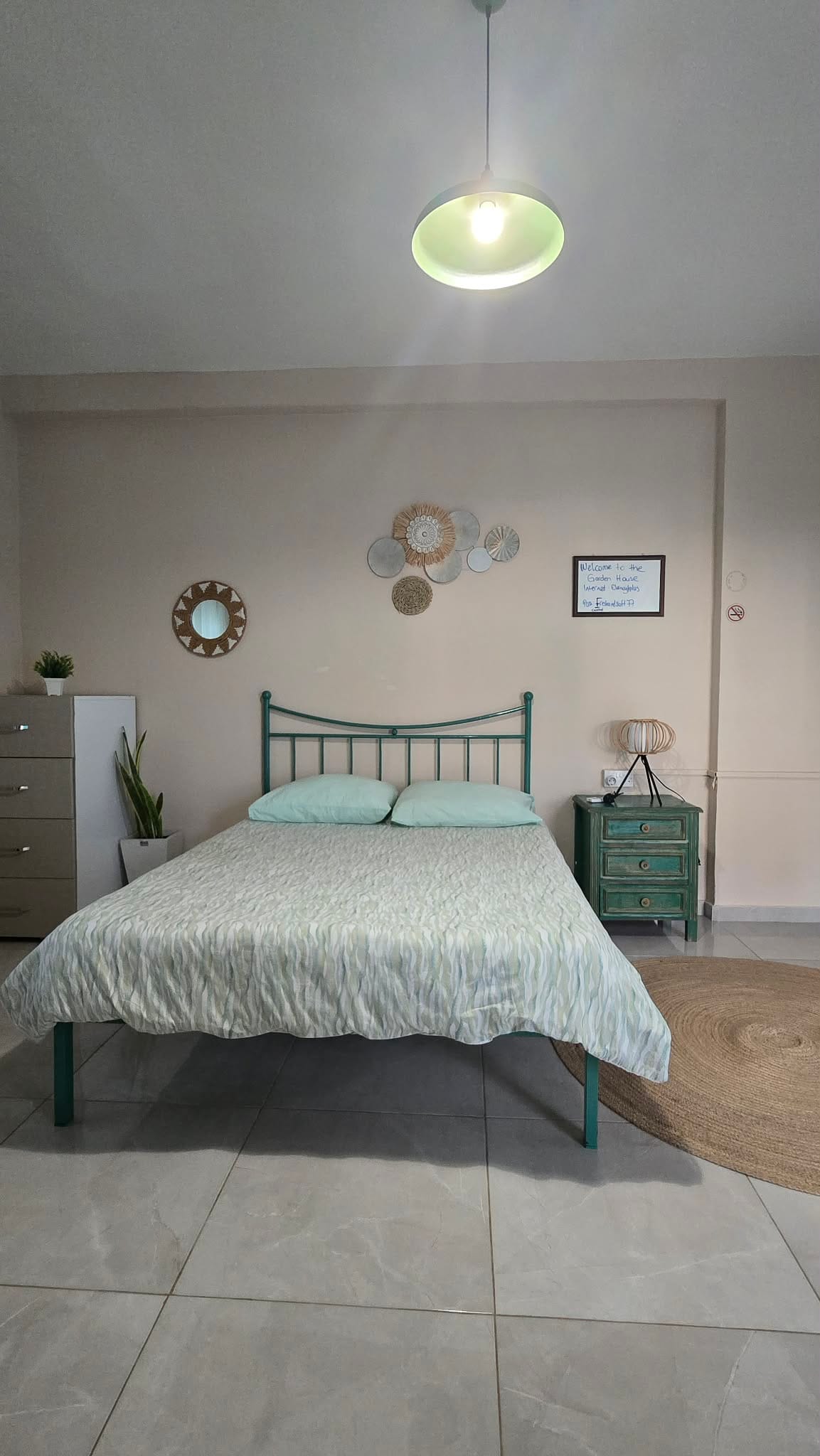 Geniet van je ontsnapping aan het routinematige leven in onze nieuwe studio in Mykonos-stijl met een mooie, kleine tuin direct naast een enorm zwembad en een zandstrand met de mooiste zonsondergang op Cyprus! Je komt je studio binnen via een aparte ingang naast je eigen kleine tuin (zithoek/BBQ). Geniet van een queensize bed en een gezellige bank of derde bed, een eigen badkamer en een kleine keuken en eethoek. Alle winkels en restaurants op een paar stappen lopen. Haven, winkelcentrum en nachtleven en meer stranden op 10 minuten met de bus.