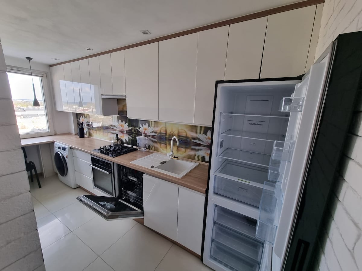 Modern en comfortabel appartement van 50 m² in een rustige buurt. Uitstekende locatie met gemakkelijke toegang tot het openbaar vervoer, winkels en servicepunten. Indeling appartement: • Woonkamer met kitchenette – woonkamer met een eiland, moderne keuken met basisuitrusting (bestek, borden, potten, pannen) • 2 slaapkamers – comfortabele slaapbanken, dekbedden en kussens beschikbaar ter plaatse • Badkamer – esthetisch en volledig uitgerust Reserveer gerust. 😊