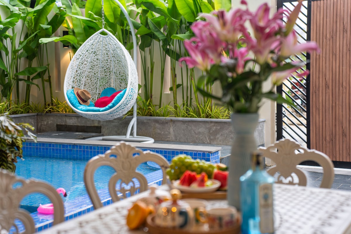 🏡 Welkom bij FEN VILLA❤️ 🛏️ 5 slaapkamers – 6 bedden – 6 badkamers – ruime woonkamer en keuken met airco en plafondventilatoren 💦 Koel privézwembad – drijvend speelgoed inbegrepen 🎱 Biljarttafel – gratis houtskool voor de barbecue 🍉 Gratis welkomstfruit en -drankjes ✈️ Gratis ophalen van de luchthaven voor reserveringen van vier nachten of langer 🌴 Met een warme tropische stijl is de villa perfect voor vriendengroepen, collega's of gezinnen 🏖️ My Khe Beach ligt op slechts 5 minuten lopen, omgeven door mini-marts, cafés en restaurants😍