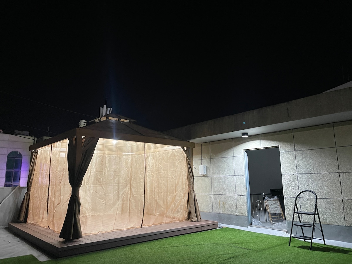 # # Informatie over het gebruik van de barbecue (tegen betaling) # # De BBQ-ruimte is een buitenfaciliteit op het dak en kan moeilijk te gebruiken zijn, afhankelijk van de weersomstandigheden (sterke regen en wind) op de dag. - Gebruikskosten: 30.000 KRW (bankoverschrijving na bevestiging ter plaatse op de dag) - (Winter) Voorziene items: grote brander/grill set, ander meubilair - (Zomer) Voorziene items: houtskool/grill en andere items * Directe aanvraag van de host: Zoek naar OpenTalk âAirbnb Daecheon' * # # Houd rekening met het volgende voordat je reserveert # # 1. Geen eigen parkeergelegenheid, parkeren op straat voor het huis. 2. Villa 3e verdieping zonder lift (huis) 3. Buitenbarbecue op de 3e verdieping (exclusief kosten) Gelegen in het centrum van Boryeong City (Dongdae-dong), is het een rustige en gezellige accommodatie in de stad. Het is geschikt voor grote gezinnen en groepen. Het is een gezellige accommodatie waar je overdag kunt genieten van barbecues bij de accommodatie met je gezin aan zee. # # Afzonderlijke aanvraag voor reservering op dezelfde dag # #