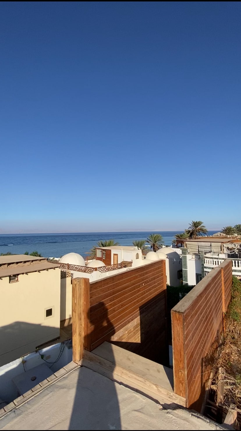 Welkom bij Maron House, A Serene Escape Above Dahab een adembenemend dak, biedt een ongeëvenaard panoramisch uitzicht van 180° waar de zee de lucht ontmoet elke hoek van dit huis brengt de schoonheid van het buitenleven naar binnen. Word wakker met het zachte geluid van de golven, adem de frisse lucht in, geniet van een rustige ochtend op het terras en geniet van een kopje koffie met een uitzicht als geen ander. Kom en ervaar het ultieme uitje waar de zee, bergen en woestijn in perfecte harmonie samenkomen.