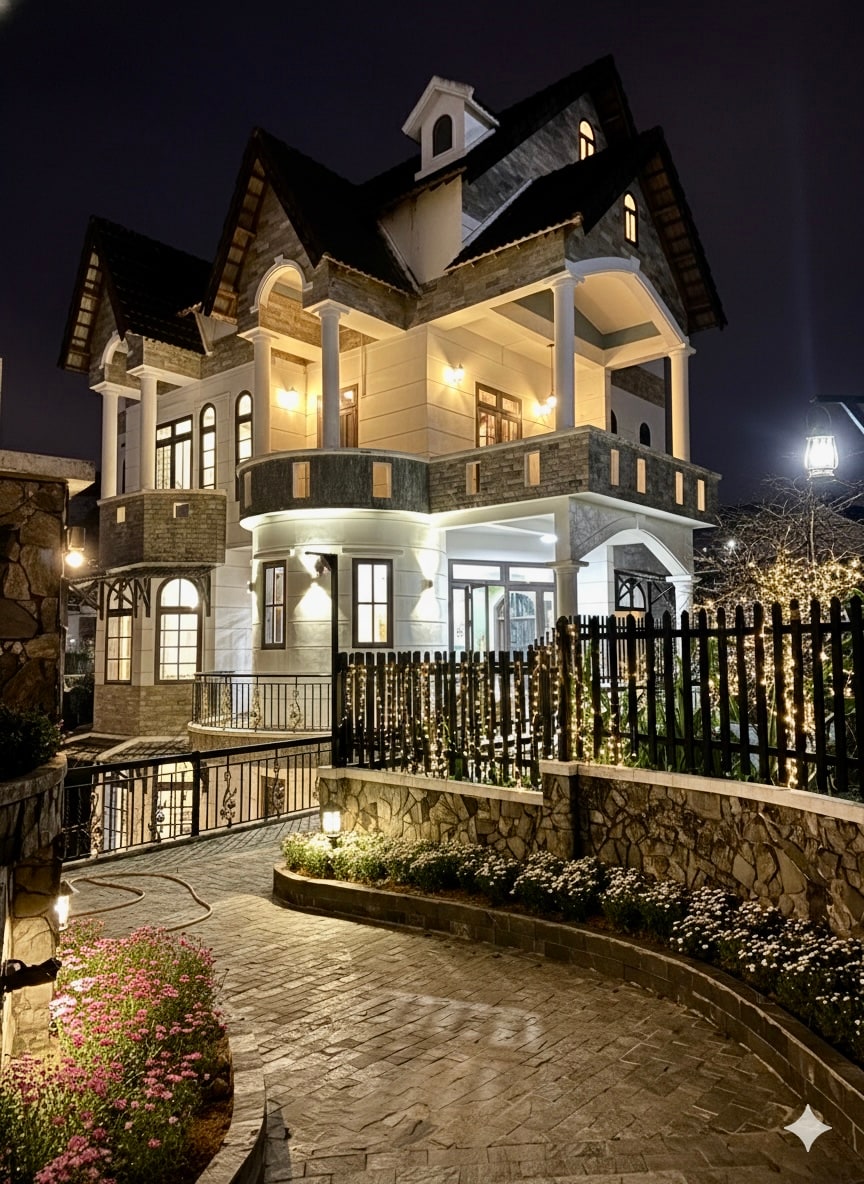🪵 MORE HOME được kiến tạo theo phong cách Rustic (Mộc mạc), sử dụng gỗ tự nhiên làm vật liệu chủ đạo, mang lại cảm giác ấm cúng, gần gũi và thư thái đặc trưng của Đà Lạt. 🛋️Thiết kế mở, trần cao với hệ thống đèn trang trí ấm áp. Khu vực Phòng Khách thoải mái và Bếp đầy đủ tiện nghi (có dụng cụ nấu nướng cơ bản). 🛏️ Phòng Ngủ: Cung cấp ít nhất ba phòng ngủ (có thể bao gồm gác xép) với nội thất gỗ đồng bộ, đảm bảo riêng tư và ấm áp. 🚿 Phòng Tắm: Thiết kế hiện đại, sạch sẽ với gạch ốp màu tối.