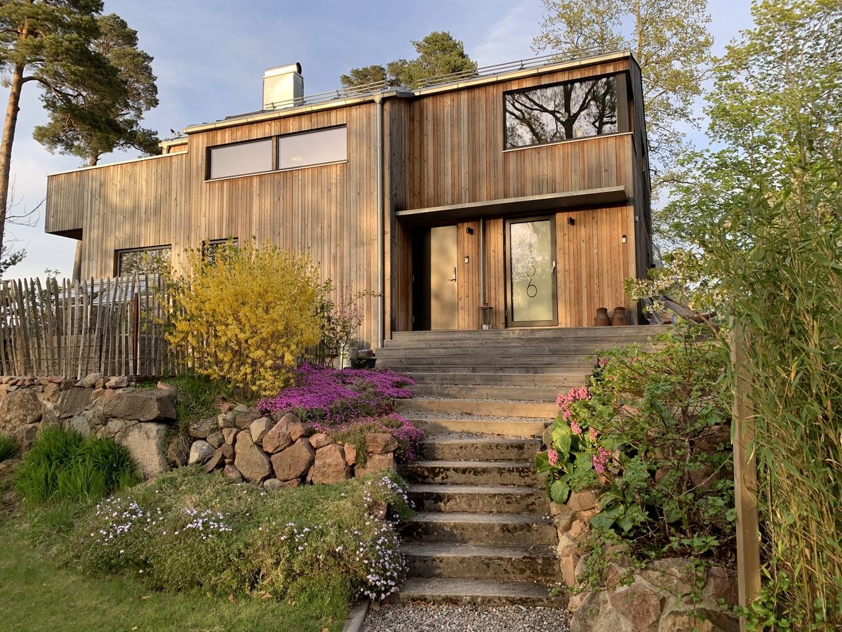 Een modern, goed gepland en goed uitgerust huis (vanaf 2021) verdeeld over twee verdiepingen (38 m ²) met de zee buiten. Magisch uitzicht door royale ramen op het zuiden. Groot terras met dak en barbecue. Door natuurlijke materialen in gestripte Scandinavische stijl die de lijn tussen buiten en binnen vervaagt. Het huis ligt afgelegen op een meerperceel op het eiland Tranholmen - een autovrije idylle die is gescheiden met een smalle zeestraat van Norra Djurgården en Stocksund. Het eiland is bereikbaar met de veerboot (8 min) vanaf Ropsten waar de metro naartoe gaat. Winterbrug naar het eiland.