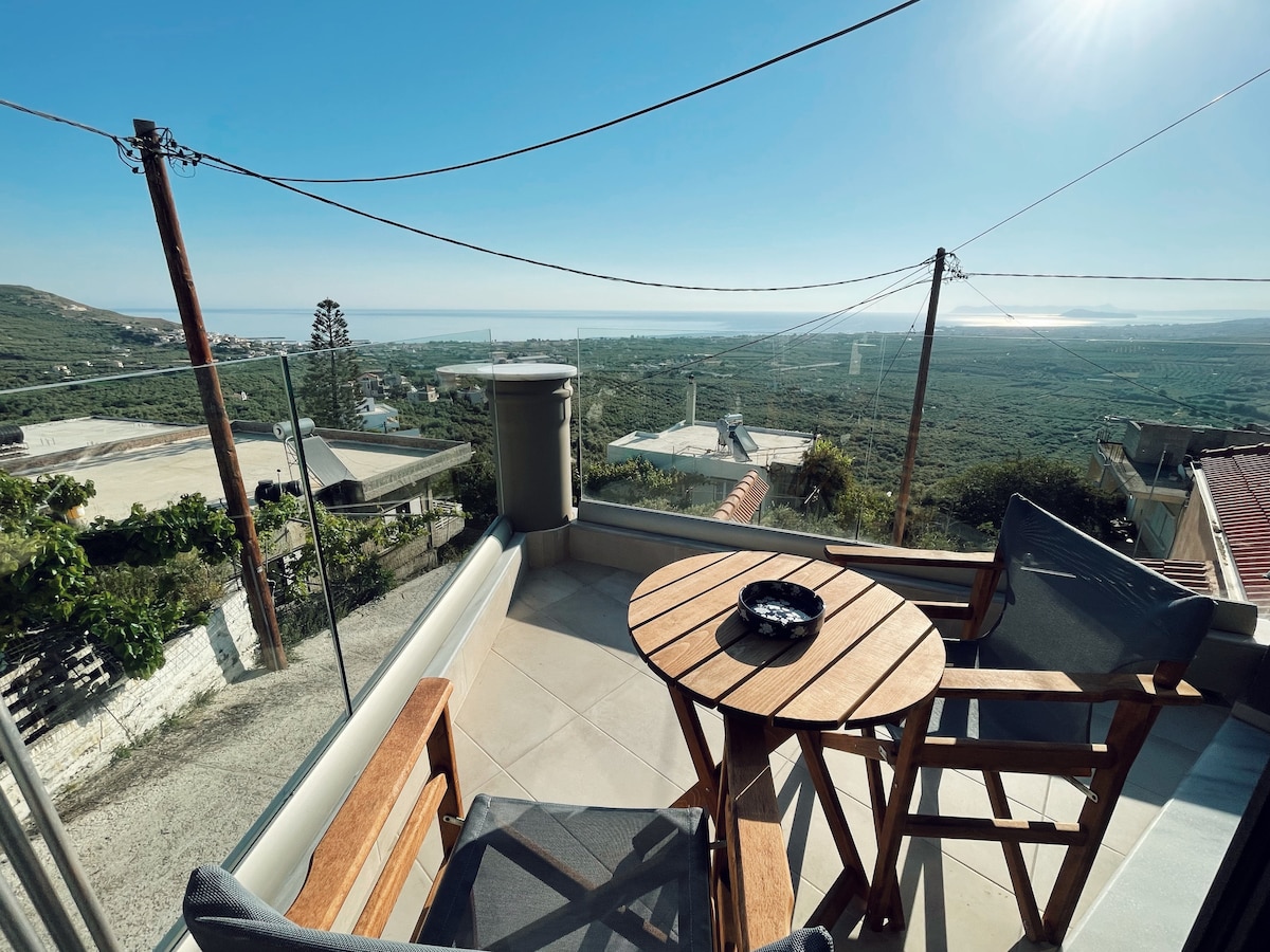 Dit luxe appartement ligt in het rustige dorp Marathokefala en is gebouwd in 2021 en heeft een prachtig uitzicht op de golf van Chania op het eigen balkon. Het biedt alle comfort in het modern ingerichte pand, evenals op het adembenemende terras met een zwembad, een deel van ons 'King Crimson Luxury Apartments' -complex. Het ligt op slechts 5 minuten rijden van restaurants, hotels en stranden van Kolymvari. Chania en Falasarna hebben ook een idee!