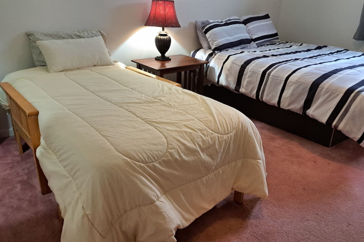 Breng je familie of groep naar deze ruime retraite dicht bij het centrum. Met een kingsize bed, queensize bed, twee XL eenpersoonsbedden en een futon. Breng je dagen door met genieten van de veranda/speelkamer met pooltafel, tafelvoetbal en bordspellen, of ontspan op het balkon met een golfbaan. Geniet van films en sport op de 85” smart-tv. Kook in de goed uitgeruste keuken of gloednieuwe buitengrill. Met uitnodigende woonruimtes en doordachte details maakt dit huis het samenkomen gemakkelijk en onvergetelijk.