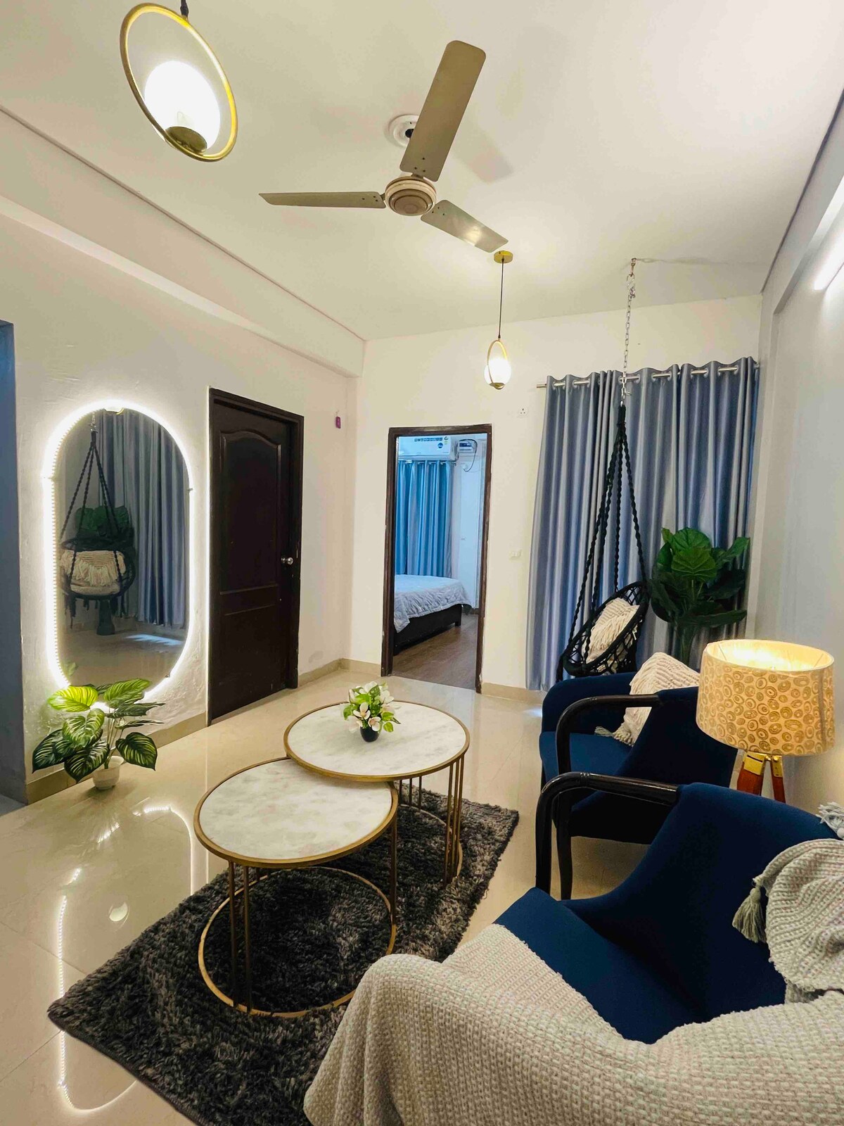 Volg @suave.stays Geniet van een stijlvolle ervaring in deze centraal gelegen plek. Met zorg ontworpen voor gezinnen, vrienden, solo-reizigers en stellen die op zoek zijn naar een comfortabel verblijf. Met gemak winkelen, dineren en de stad verkennen. Het winkelcentrum Gaur ligt op 5 minuten lopen met tal van winkels, restaurants en leuke activiteiten. Het metrostation Noida sector 52 is gemakkelijk te bereiken op 15 minuten rijden.