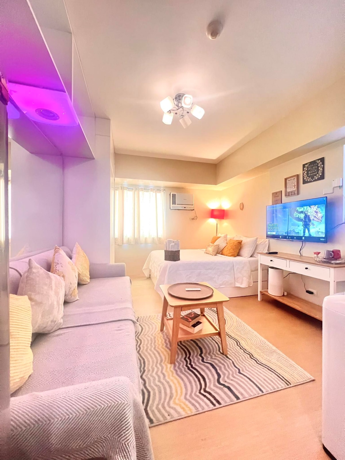 Kamer met airconditioning, tv met Netflix, eethoek. Heeft een eigen WC en badkamer. Beveiligde parkeerplaats binnen het complex. Bezienswaardigheid: nabij Road Haus Hotel (Manny Paquiao Hotel), Notre Dame of Dadiangas en SM GenSan Lees de huisregels voordat je boekt. Extra kosten: 1. 100php per dag voor gebruik van inductiekookplaat. 2. Groepen met meer dan 3 gasten. Voer het juiste aantal gasten in wanneer je reserveert. We zorgen voor de extra schuimbedden.