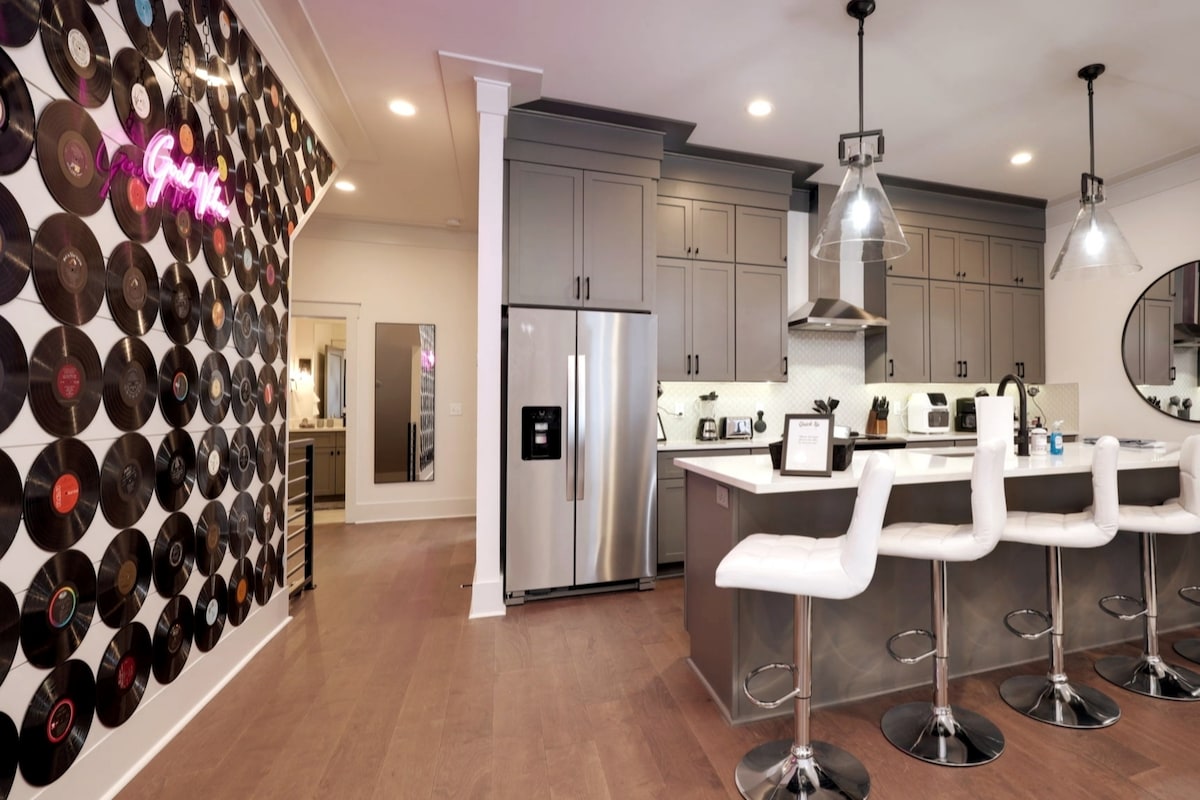 Welcome to our 2,200 sq ft three-story home built for groups who want space, entertainment, and a prime East Nashville location. Steps from Publix, Starbucks, Jeni's Ice Cream, Pearl Diver, and Tailgate Brewery. With an 89 Walk Score, you may not even need a car. What you get: - 4 bedrooms, 4 bathrooms - Fully equipped kitchen - Washer & dryer - Fast WiFi - Karaoke machine - Movie room with surround sound - Disney+, Hulu, and ESPN+ - Instaworthy photo-ops - Coffee & tea