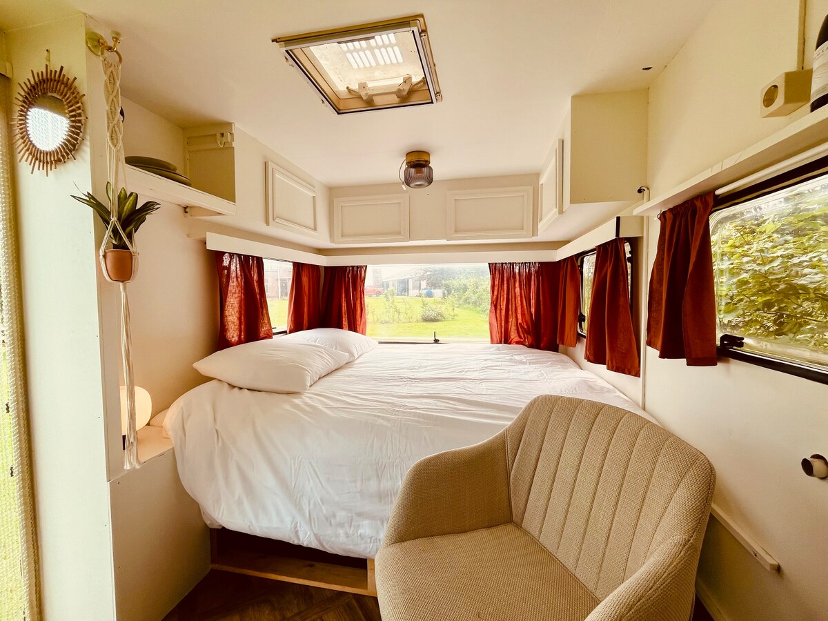 Op onze boerencamping Hoeve Rotterdam, midden op Texel, staat deze knusse caravan voor twee. Eenvoudig maar sfeervol ingericht, met oog voor detail. Ideaal voor wie houdt van het buitenleven, rust en een authentieke sfeer. Onze cosy caravan is zorgvuldig ingericht om aan al je behoeften te voldoen. Geniet van een comfortabel bed, sfeervolle verlichting en een gezellige zithoek. In de kleine kitchenette kun je - buiten - je eigen maaltijden bereiden.