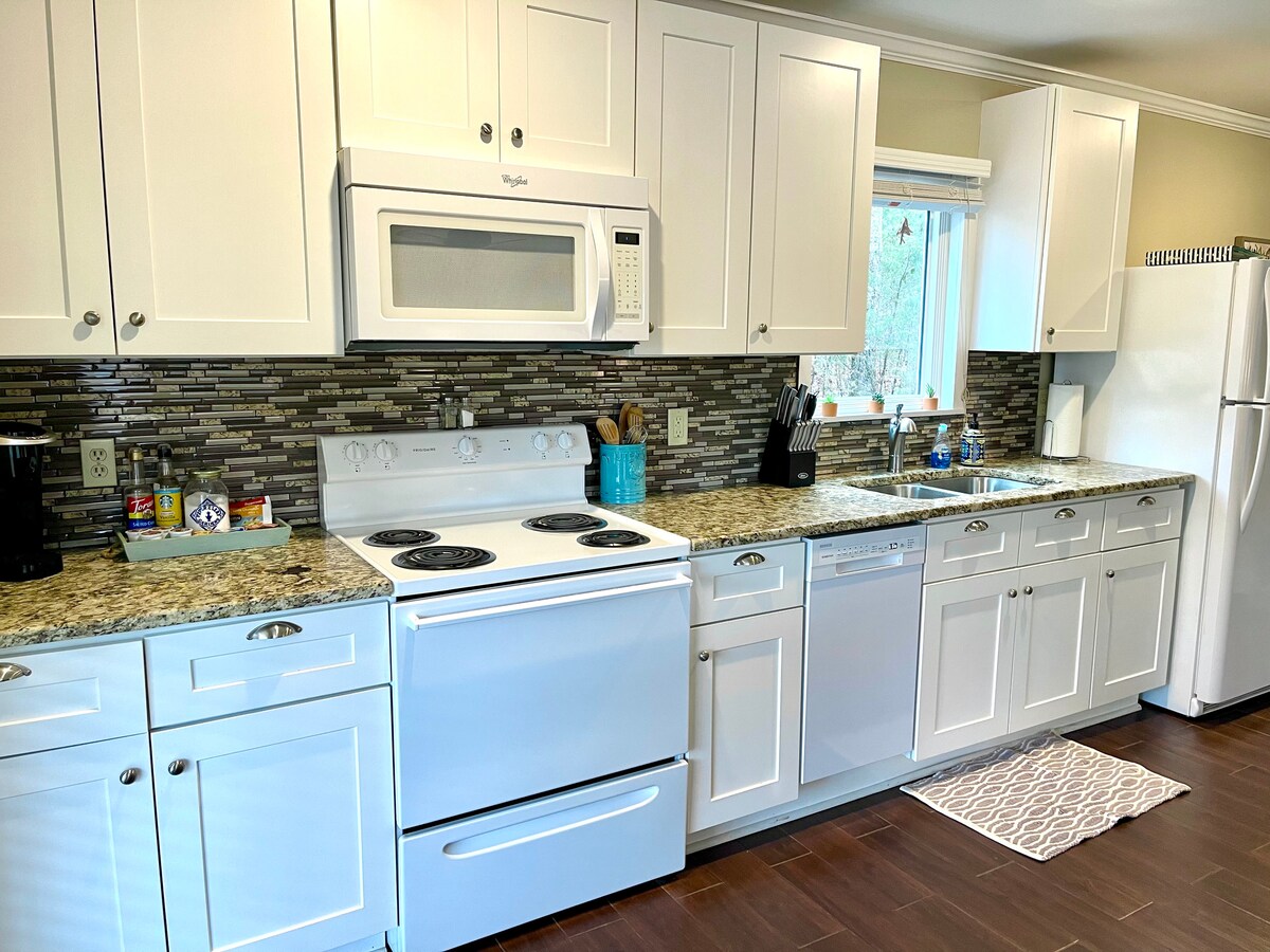 Ruime woning met 3 slaapkamers/2 badkamers, ideaal voor ontheemde gezinnen of lange verblijven. Beschikt over een groot open ontwerp, een complete keuken, een wasmachine/droger, snelle wifi en smart-tv's. Indeling op één niveau met ruimte om te ontspannen. Rustige buurt in de buurt van parken, boodschappen en scholen. Omheinde tuin met vuurplaats en grill. Huisdiervriendelijk met goedkeuring. Perfect om te ontspannen, op afstand te werken of om het gezin comfortabel te houden tijdens de overgang.