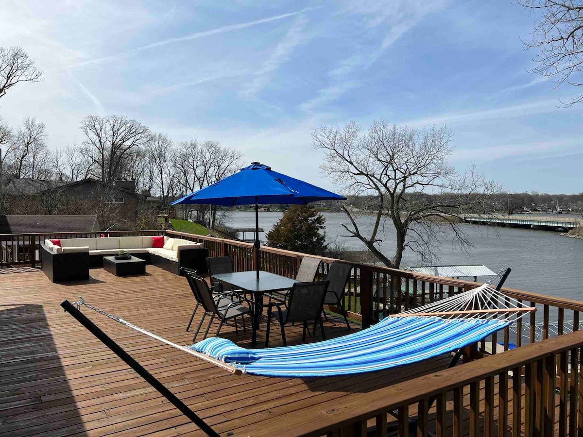 Relax with family or friends at our Lake Decatur Getaway. Two large patios offer beautiful views of the lake. Inside, there's a theater room with a 70" TV and plenty of seating. The open floor plan includes a living room, dining area with a large table and bench seats, and fully equipped kitchen. The Master Suite has a king bed and four more bedrooms. No Local Renters Without approval