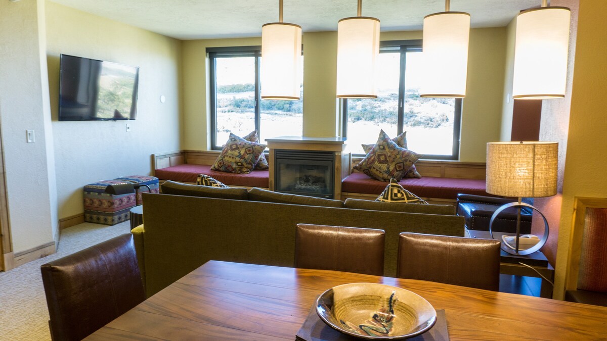 Welkom bij de nieuwste en leukste verbouwing van Red Pine. Deze eenheid is volledig gerenoveerd en voltooid in de zomer van 2017. Deze accommodatie biedt kwarts aanrechtbladen, aangepaste kasten, een groot centraal eiland, een open plattegrond, opgewaardeerde apparaten, HD-tv 's en een echt 1,5 bad voor jouw gemak. De nieuwe open plattegrond is geweldig om te socialiseren en te dineren. De accommodatie beschikt over een eigen patio met een tafel voor 4 personen en een nieuwe Weber-grill. Geniet van het open uitzicht op de prachtige Canyons golfbaan, hole 13.