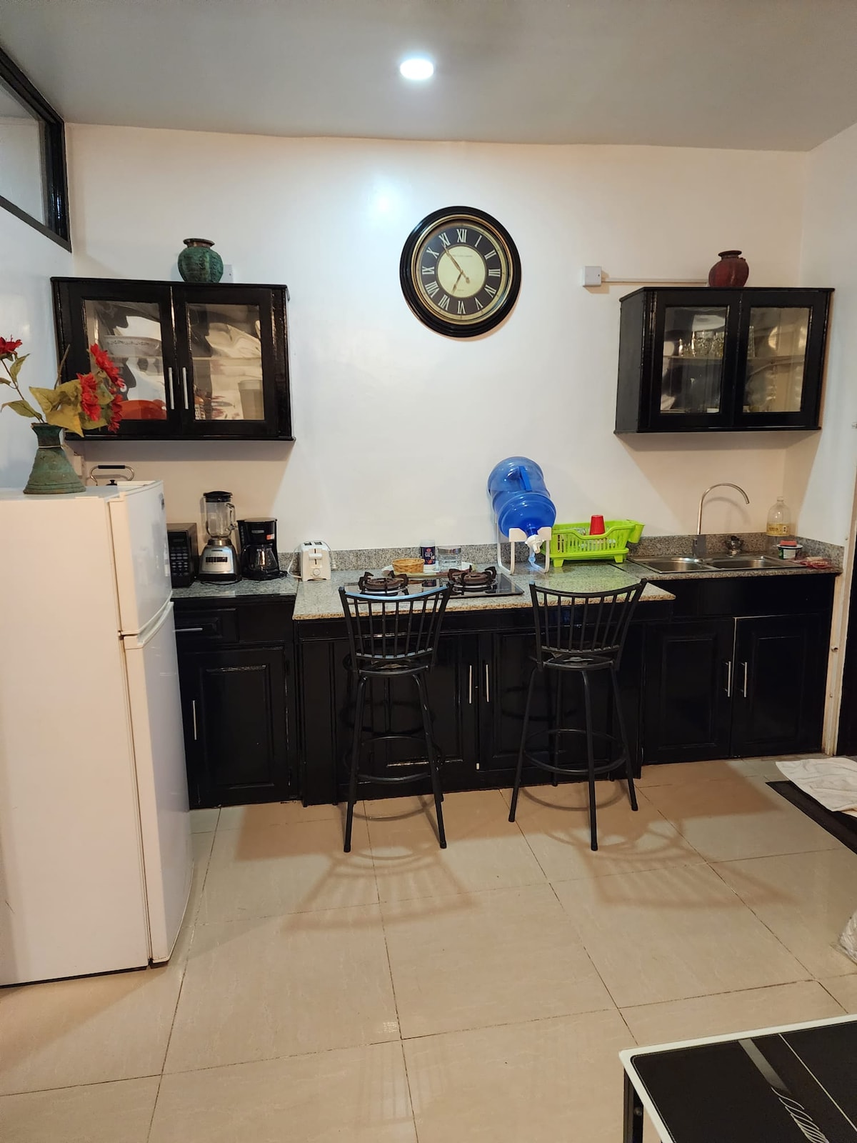 Volledig gemeubileerd appartement met 2 bedden en 2 badkamers op de begane grond in Queenstown. Inclusief snelle wifi, beveiligingscamera's, smart/kabel-tv, 24/7 beveiliging, generator, warm en koud water, airconditioning, wasmachine en droger. De accommodatie is in uitstekende staat met hoge plafonds, ruime kamers en is centraal gelegen; 60 minuten van de luchthaven CJIA, op 10 minuten van het centrum van Georgetown en op 15 minuten van winkelcentra. Supermarkt en bakkerij liggen op korte wandelafstand. Ophalen van de luchthaven kan geregeld worden.
