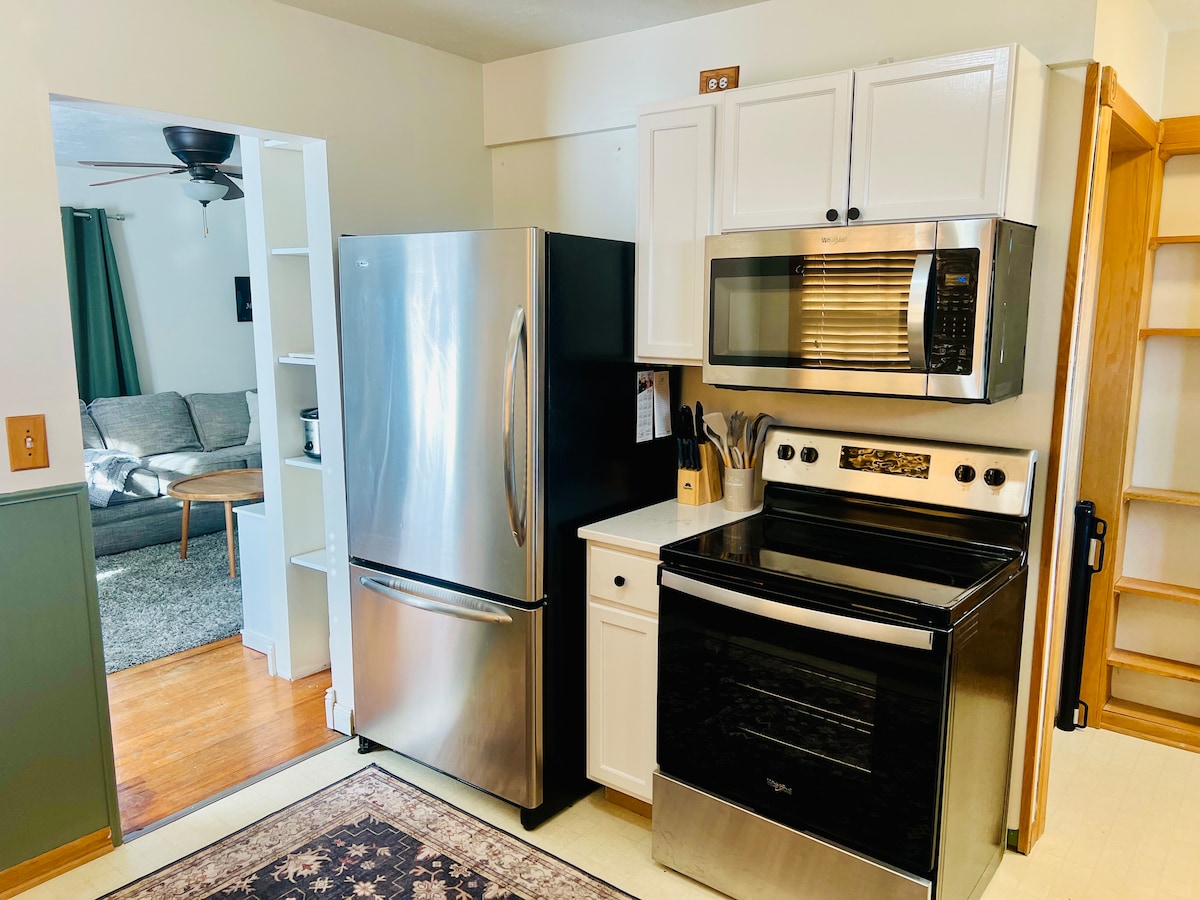 Welkom bij de Urban Jungle Retreat! Deze prachtige studio is een gedurfde mix van strakke zwarte interieurs en weelderig groen, met een opvallende grasmuur die de natuur naar binnen brengt. Ontspan in het comfort van een luxe kingsize bed in een moderne, stijlvolle ruimte. Gelegen in het centrum van Des Moines, ben je op een steenworp afstand van de trendy East Village, Des Moines Riverwalk en Historic Court District. Geniet van de ultieme stedelijke ontsnapping waar stadsvibes natuurlijke elegantie ontmoeten.