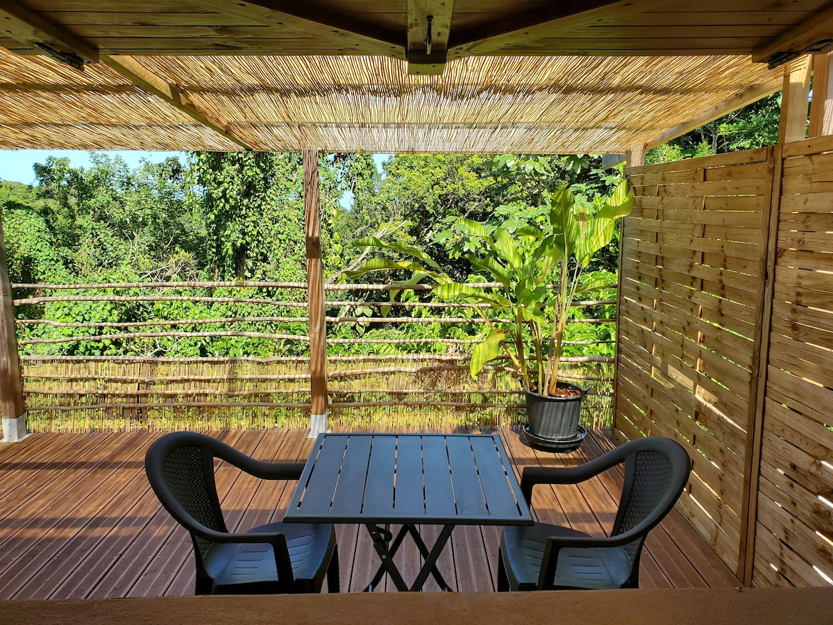 Tiny House gelegen op een heuvel op een hoogte van 400m in het midden van een fruittuin. bereikbaar via een bospad in goede staat. Rustige en afgelegen plek tussen de zee en de berg met een dominant uitzicht. Natuurlijk frisse en luchtige accommodatie zonder muggen. Ecologische accommodatie. Gelegen op 10 minuten van Leroux Beach 20 minuten naar Malendure Beach 20 minuten naar Grande Anse Beach Geschikt voor mensen die de verbinding willen verbreken, rusten of tot rust willen komen.
