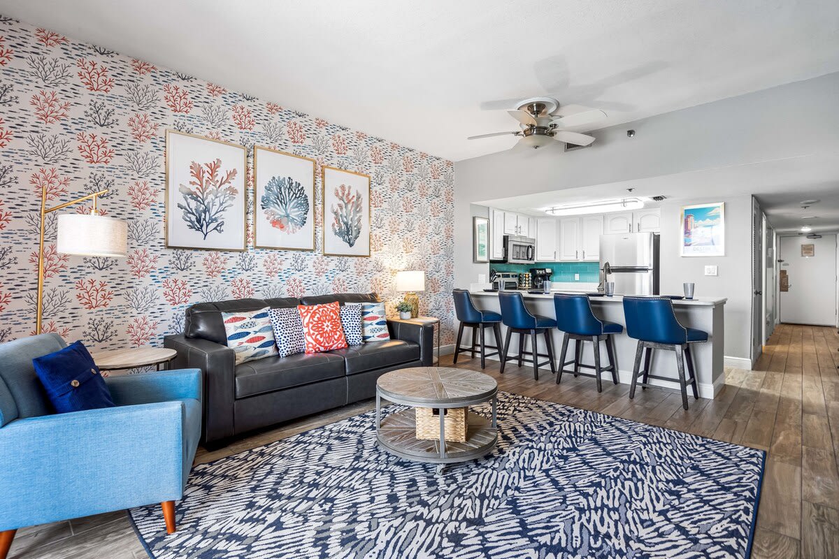 1 Bed 2 Bath (6 Slaapplaatsen) geen HUISDIEREN! Niet onderhandelbare tarieven. Locatie! Gemakkelijk toegang tot bezienswaardigheden! Directe toegang op het strand zonder de straat over te steken. Pelican Beach Resort 1004 is een onlangs gerenoveerd appartement met 1 slaapkamer en een prachtig uitzicht op de Golf van Mexico vanaf je eigen balkon, een open woonkamer en comfortabele slaapplaatsen voor maximaal 6 personen De volledig uitgeruste keuken is ontworpen met een bar met uitzicht op de woonkamer om te vermaken of te genieten van een informele maaltijd.