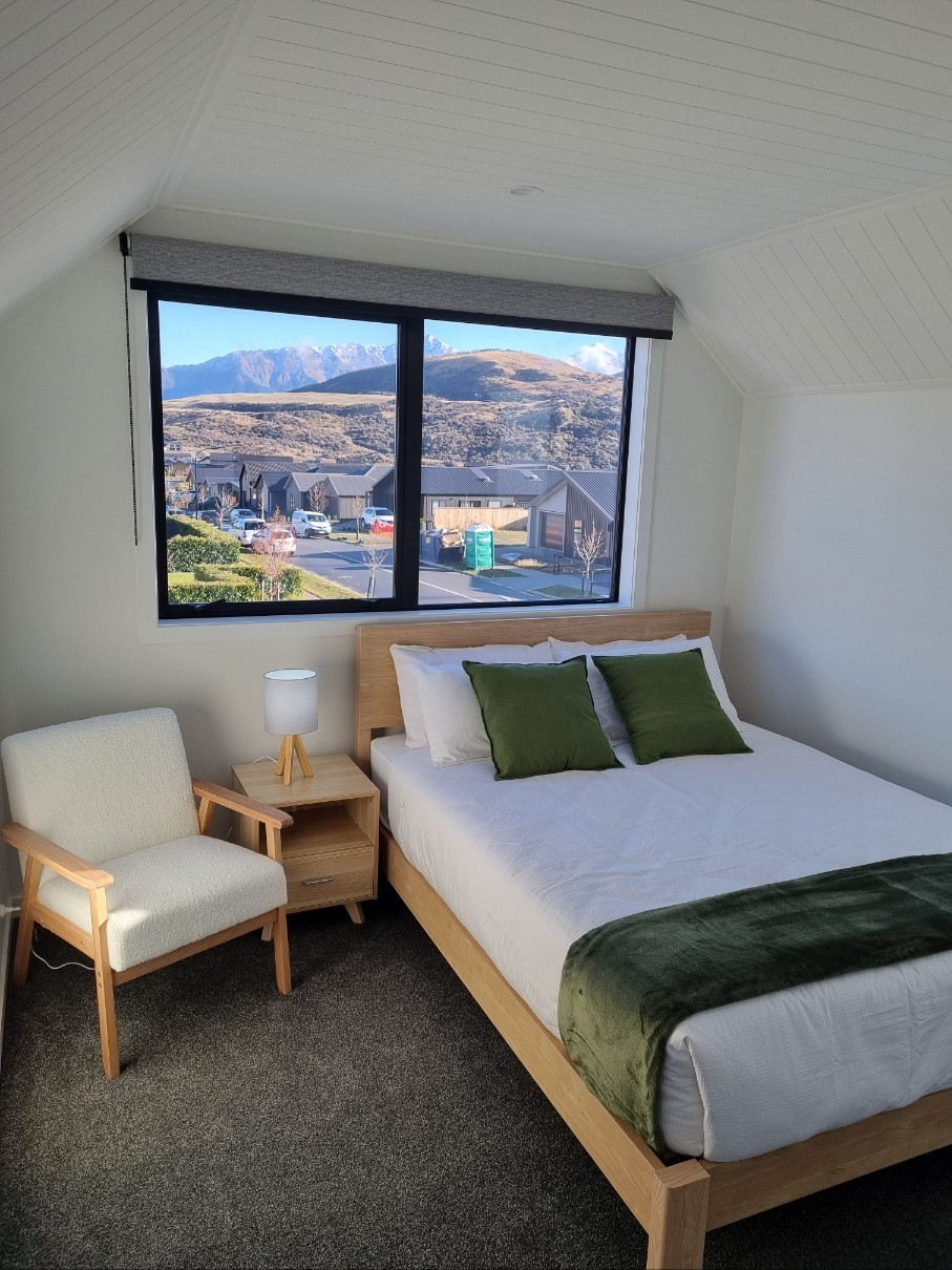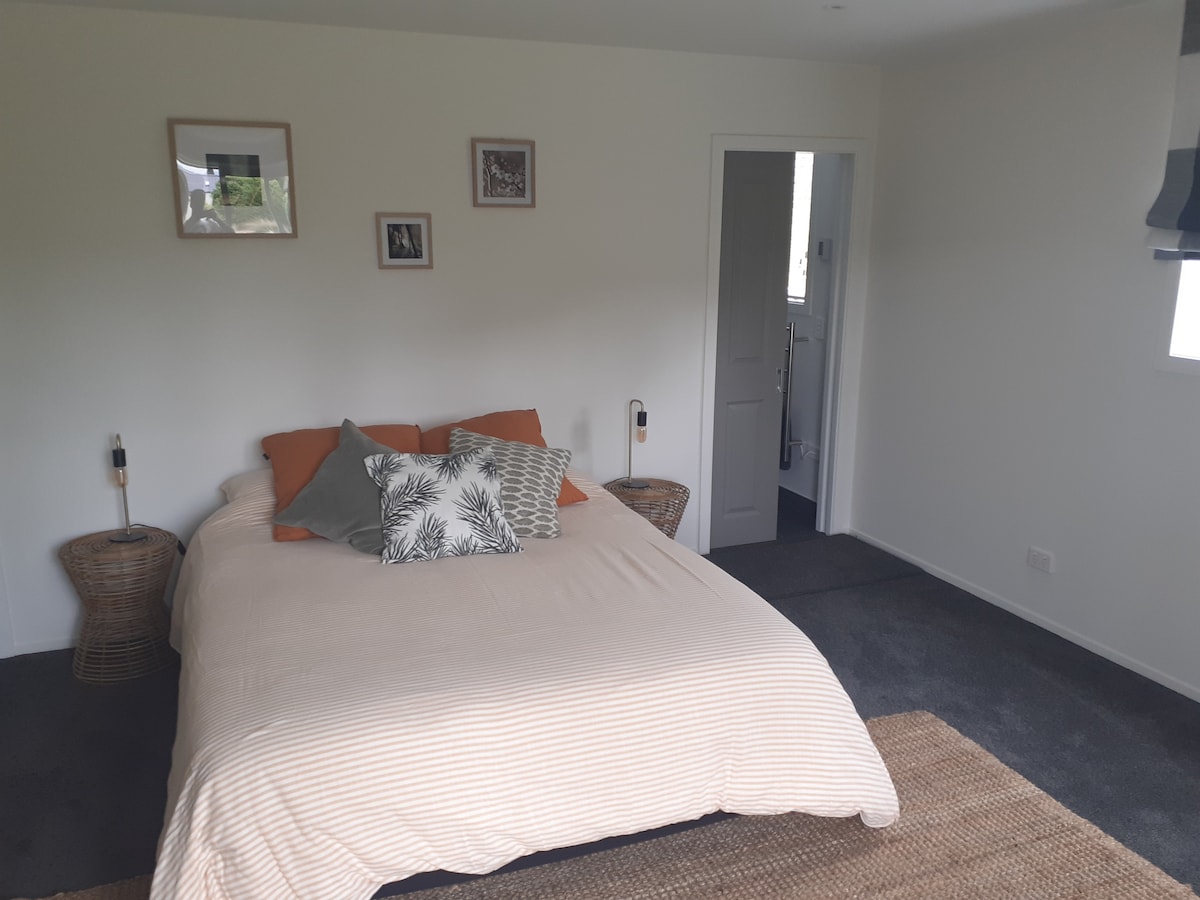 Een zonovergoten studio met een slaapkamer, badkamer en kingsize bed, verbonden met ons nieuwe huis met een prachtig uitzicht op de Remarkables. De woonkamer is voorzien van een eettafel, een tweezitsbank, een koelkast/vriezer, een magnetron, een broodrooster en een waterkoker. Er is geen oven of kookplaat. De badkamer is uitgerust met handdoeken en een haardroger. Op 10 minuten rijden van de winkels van Frankton, de supermarkt New World en de luchthaven, en op 5 minuten lopen van het café en de winkel The Farmhouse. De suite heeft een eigen ingang met een sleutelkluis.
