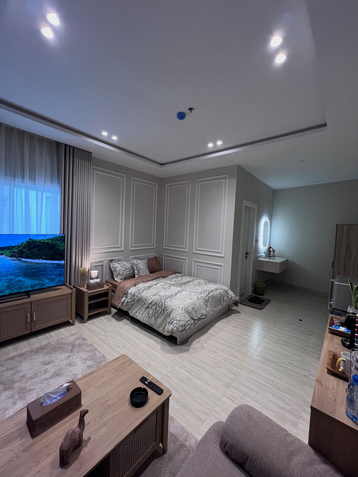🛑 للحجوزات الطويلة يرجى التواصل عبر التطبيق يتميز هذا الاستوديو بجوّ هادئ ومريح، مُصمم بعناية ليوفر كل وسائل الراحة والرفاهية. عند دخولك إلى المكان، ستشعر بالاسترخاء الفوري بفضل الإضاءة الدافئة والمساحة المُتناسقة التي تجمع بين البساطة والأناقة.