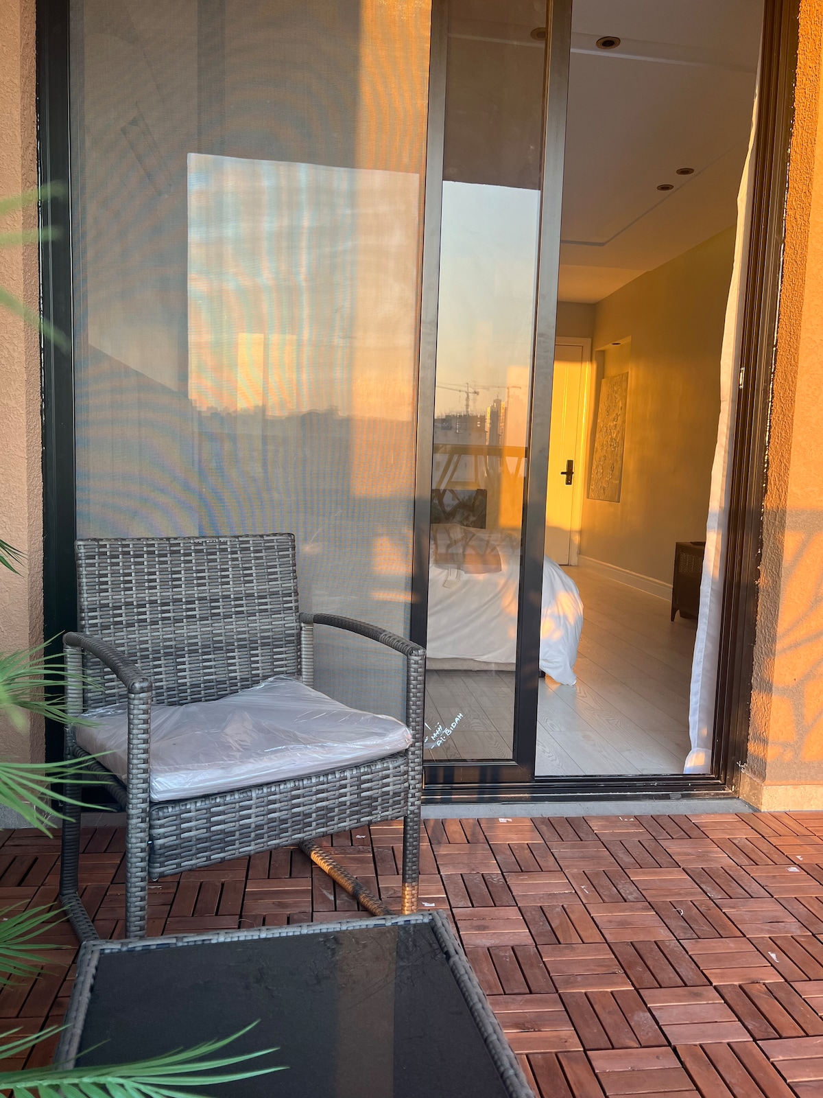 Ontdek een onderscheidend verblijf in een comfortabel appartement in de stad Al Khobar. Het appartement beschikt over verschillende kenmerken: 1. Slimme en veilige toegang via een slim deurslot. 2. Een prachtig balkon met uitzicht. 3. Een koffiehoek met een koffiezetapparaat, een magnetron en een kleine koelkast. 4. Een 4K smart screen. 5. Snelle 5G-internetverbinding. 1. Bahreinbrug - binnen 5 minuten. 2. Rashid Mall - 10 minuten. 3. De waterkant - 5 minuten