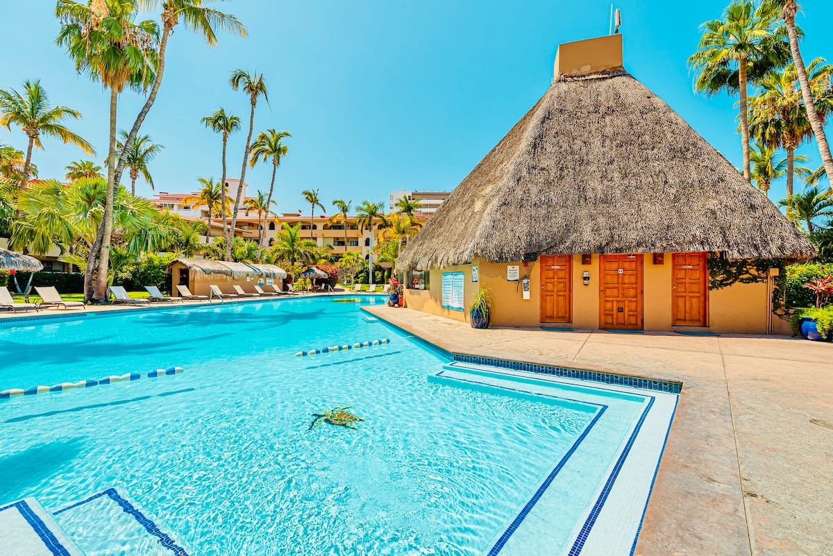 Dit is een prachtige casita met 1 slaapkamer op de begane grond. Het zwembad ligt vlak voor je kamer met uitzicht op de oceaan. Er is een bubbelbad in het grote zwembad. Je hebt toegang tot meer dan 25 zwembaden, restaurants, Quivira golfbaan, gratis pendeldiensten naar 5 resorts. De kamers hebben een kingsize bed en een eigen badkamer. Deze kamer is afgesloten en heeft een eigen ingang vanaf het terras naar het zwembad en de parkeerplaats. Dit heeft een eigen 65 inch tv, koelkast en magnetron. Perfect voor 2 personen.
