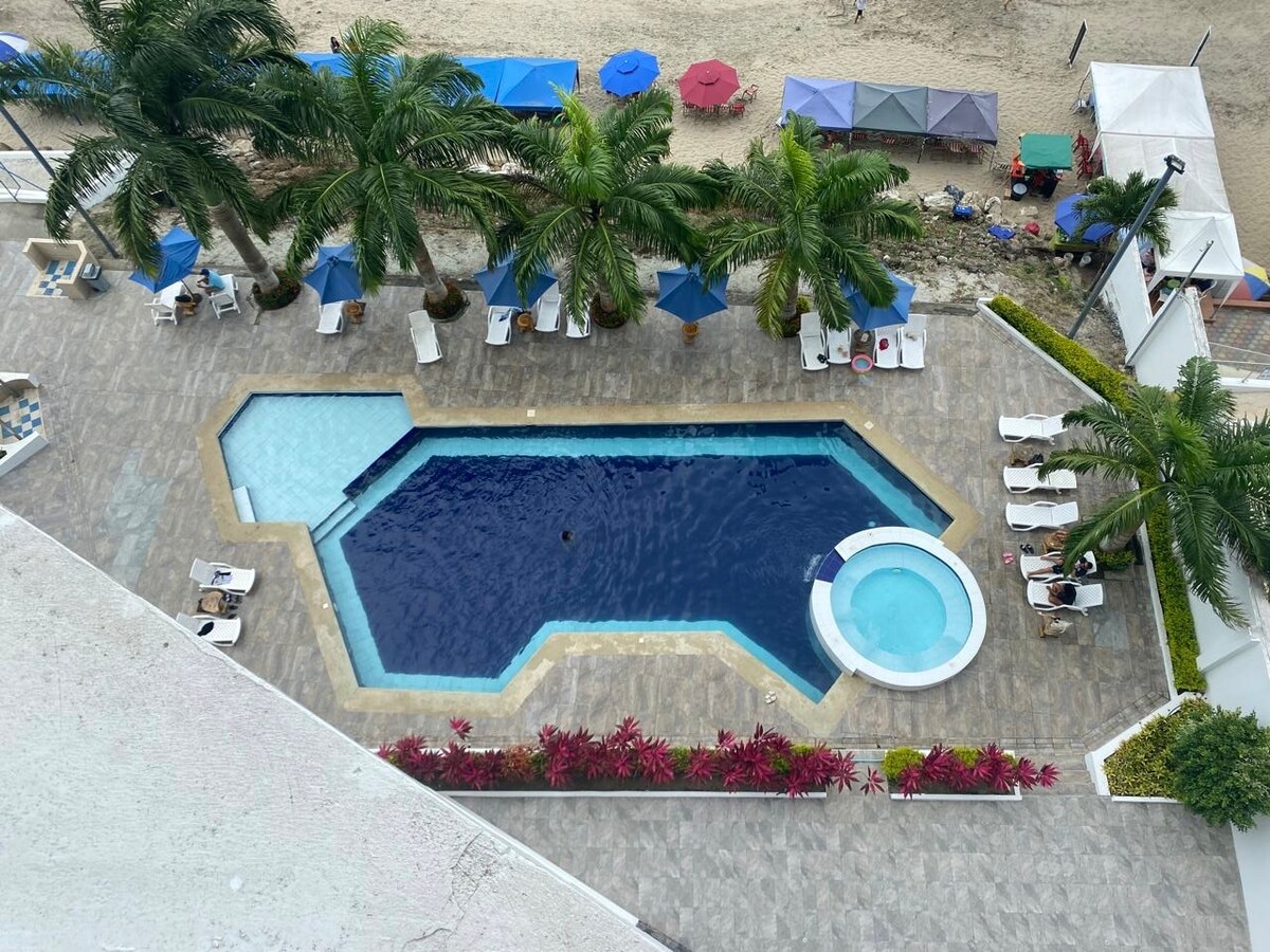 Luxe appartement met uitzicht op de oceaan en privéstrand. Verhoog je ervaring in Tonsupa, met veiligheid en rust. Daarnaast zorgen de faciliteiten voor plezier voor het hele gezin. Luxe appartement met direct uitzicht op de oceaan en privéstrand. Geniet van verschillende voorzieningen met familie en vrienden in een veilige en ontspannen omgeving. Breng je ervaring op het strand naar een heel nieuw niveau.