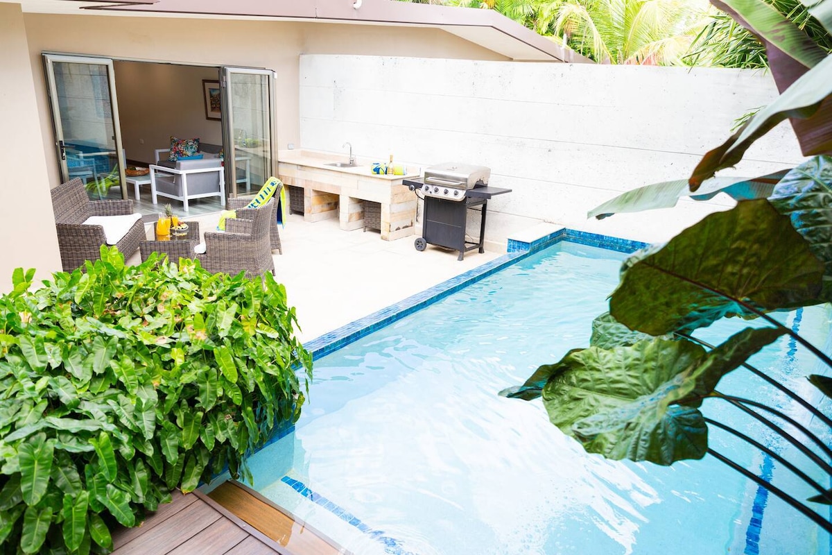 Modern omheind appartement met 2 slaapkamers/2 badkamers•10 minuten naar POS/St James