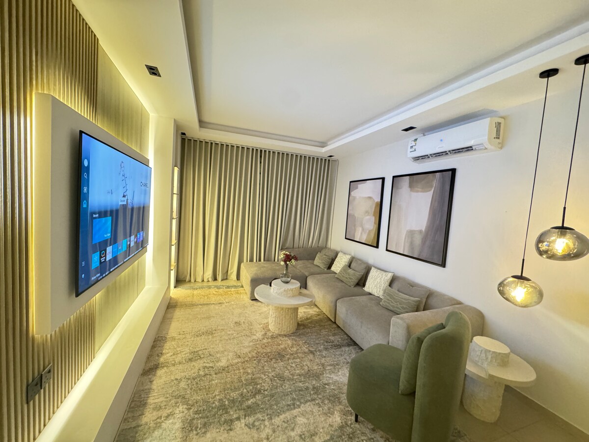 Moderne 1SL in Hittin, een van de beste locaties in Riyad, op enkele minuten van Boulevard City en topcafés. Ontworpen voor comfort en gemak, met zelf-inchecken en een volledig slim systeem. Beschikt over een gezellige woonkamer, een comfortabele slaapkamer, een 85-inch smart-tv en een elegante elektrische open haard voor een ontspannen sfeer. Volledig uitgeruste keuken met oven, magnetron, elektrisch fornuis, vaatwasser en wasmachine. Schoon, stijlvol en ideaal voor stellen, zakelijke reizigers en korte of langere verblijven.