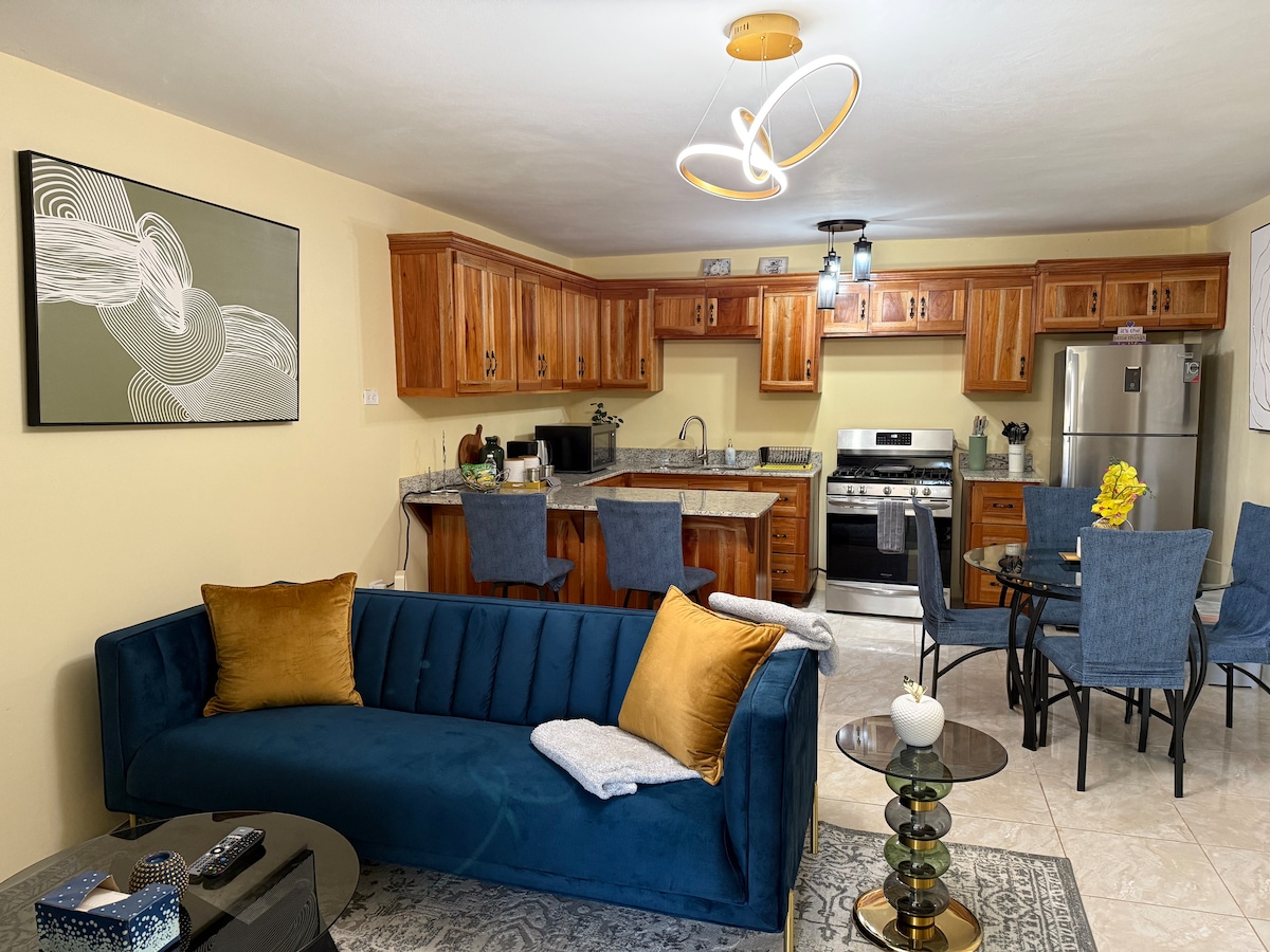 ▪️Wij bieden onlangs gerenoveerde comfortabele appartementen met twee verdiepingen in een vriendelijke veilige gemeenschap met uitzicht op CARDIFF HALL Beach in de Resort Town of Runaway Bay in St. Ann Jamaica ▪️Je hoeft je geen zorgen te maken over beveiliging, want er zijn 24-uurs bewakingscamera 's en host woont op het terrein ▪️Wij bieden één 1bdr & 2br ▪️Prijs begint vanaf 100US voor 2 gasten en stijgt met 30US per extra gasten ▪️We zijn ongeveer 1 uur verwijderd van de internationale luchthaven Sangsters op ✈️ 25 minuten van Ocho Rios