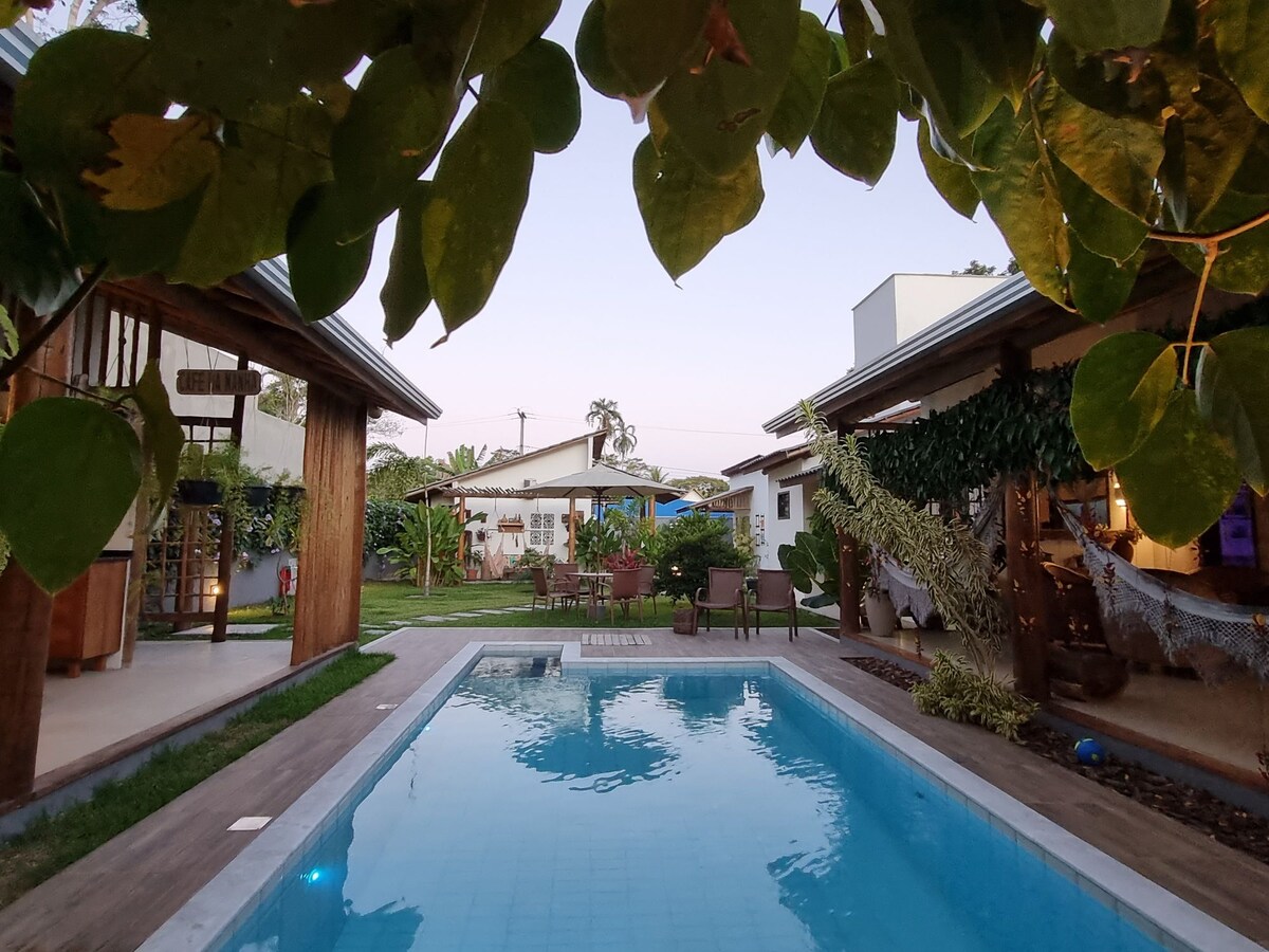 Villa Mia Arraial biedt accommodatie in een charmant chalet van 36m ², in een ruimte omgeven door groen, met comfortabele accommodatie voor vrije tijd, ontspanning en ontspanningsdagen! Zwembad, gastronomische ruimte en tuin met aangename hoeken om speciale momenten voor de gasten te bieden! Een uitnodiging om de geneugten te waarderen die dit kleine stukje paradijs in Bahia, in het beroemde dorp Arraial d'Ajuda het beste heeft!!! De chalets bevinden zich op een perceel van 1000 m², waar ook de woning van de verhuurder is.