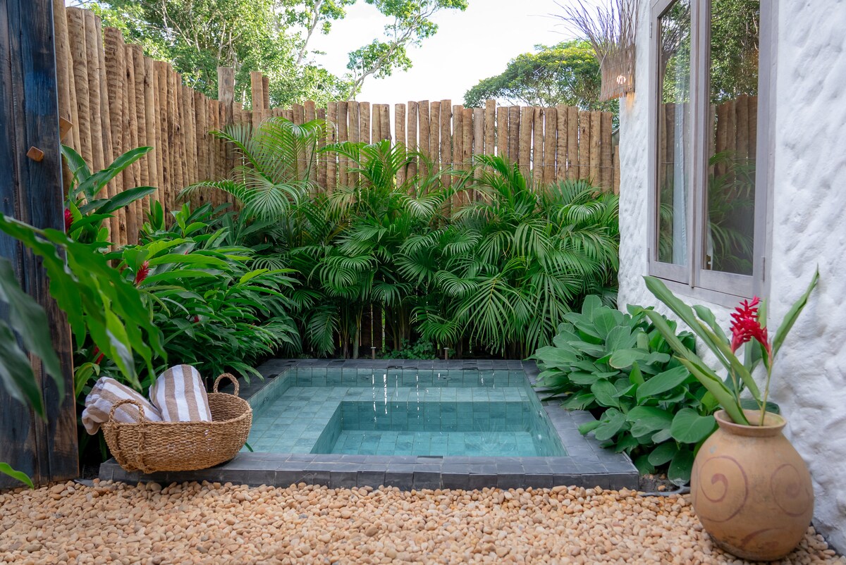 Ontspan in deze rustige en stijlvolle ruimte. Voor het beste comfort is ontbijt beschikbaar van 8.00 tot 10.30 uur, geniet van je privézwembad, op de bovenste verdieping is je balkon waar je naar het bos kunt kijken en het geluid van de vogels kunt horen Wij zijn gelegen op 1,8 km van het plein, 2,2 km van de stranden van de inboorlingen en kokospalmen,de schoonmaak en opslag is elke dag inbegrepen, ons beddengoed is 300 garens in Egyptisch katoen. Elke drie nachten wordt het beddengoed verschoond