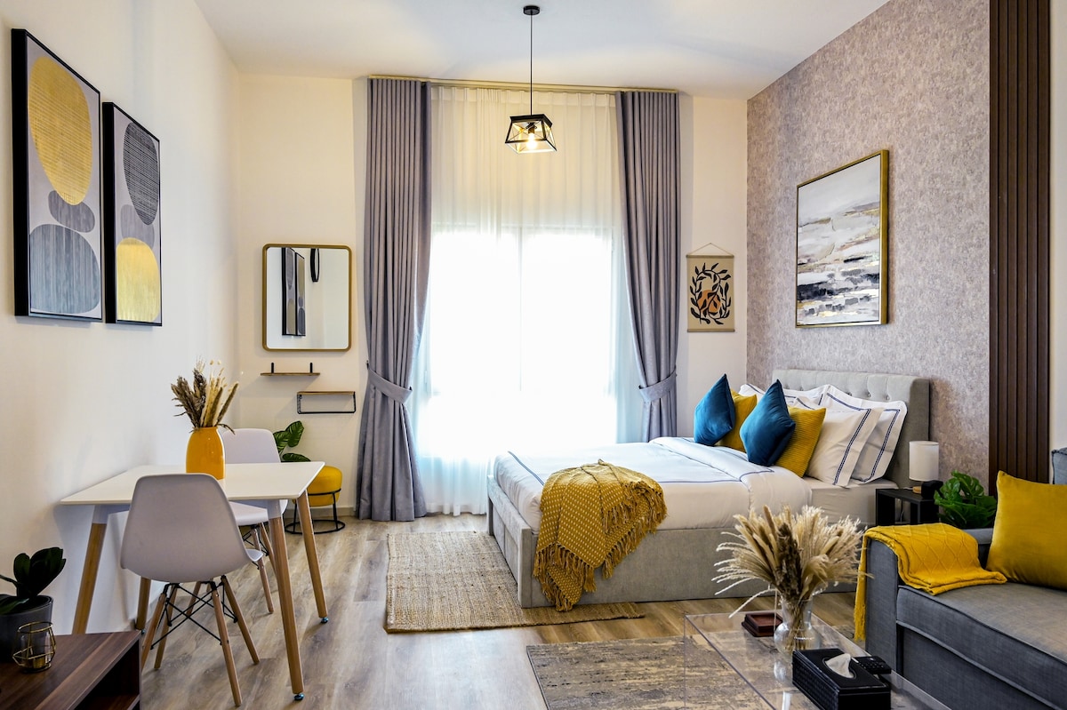 Deze luxe studio in Europese stijl is licht, stijlvol en comfortabel en je ideale keuze! Gelegen in Al Furjan, perfect voor het balanceren van werk en vrije tijd. 2 volwassenen + baby Volledig uitgerust voor een comfortabel verblijf. Elektrische scooter beschikbaar 17 minuten lopen naar de metro 10-20 minuten van de iconische locaties van Dubai: Marina, JBR, Burj Al Arab, Palm Jumeirah, Dubai Eye 8 minuten om te duiken Voorzieningen in het gebouw: supermarkt, apotheek, zwembad etc. Perfect voor stellen en zakenreizigers!