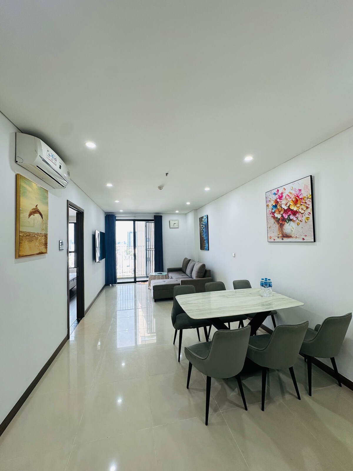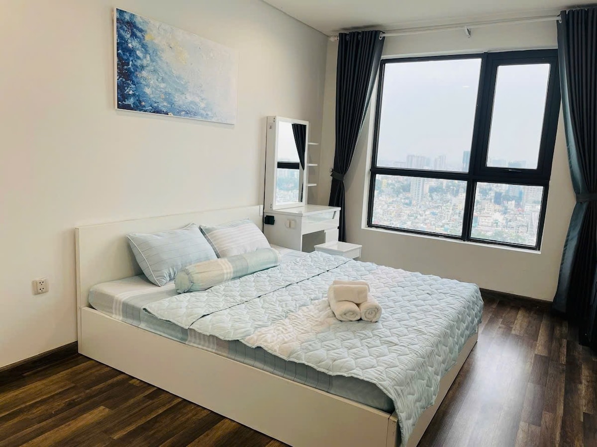 **AIRPORT PICKUP SERVICE AVAILABLE** Stay in our elegant 69m² suite at Serenity Sky Villas, District 3 — offering modern comfort at an affordable price. Welcome to a thoughtfully designed one-bedroom apartment where minimalist style meets cozy living. 🛌 Relax on a queen-size bed with premium linens and enjoy a space perfect for unwinding, recharging, or working remotely — all in a serene and stylish setting.