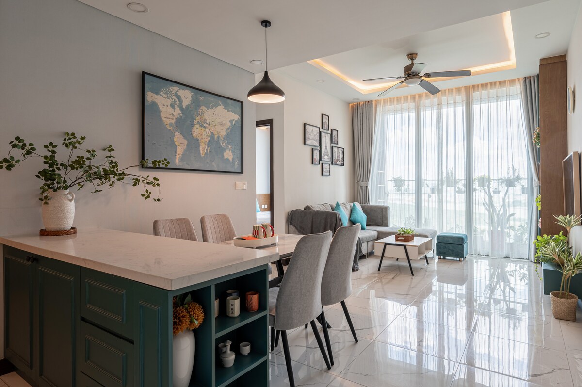 ✨ Speciale promotie van 8% korting voor een langer verblijf. Een prachtig stedelijk leven direct aan Nguyen Luong Bang Commercial Road. Het creatieve centrum van het wereldwijde 'Hybrid Working Life', waar Live – Work - Experience harmonieus integreert. - 2BR, 2 badkamers in een GLOEDNIEUW gebouw. - Onze volledig ingerichte voorzieningen bieden alles wat u nodig hebt. Je kunt ontspannen en tot rust komen met een moderne inrichting en een warme sfeer. - 1,4 km naar SECC. - 1,7 km naar Crescent Mall. - 8,3 km naar Ben Thanh Market.