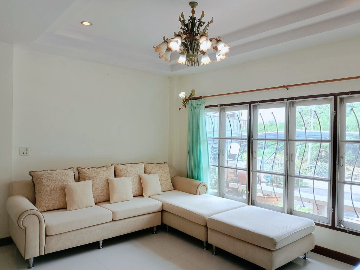 Ontspan met het hele gezin op deze rustige plek om te verblijven. Geniet van een Thaise fruitboerderij in de buurt, groene open ruimtes voor familieplezier. Comfortabel met volledig meubilair en eclectisch. In de buurt van transportmarkt, tempel en een Suphan Buri sightseeing.