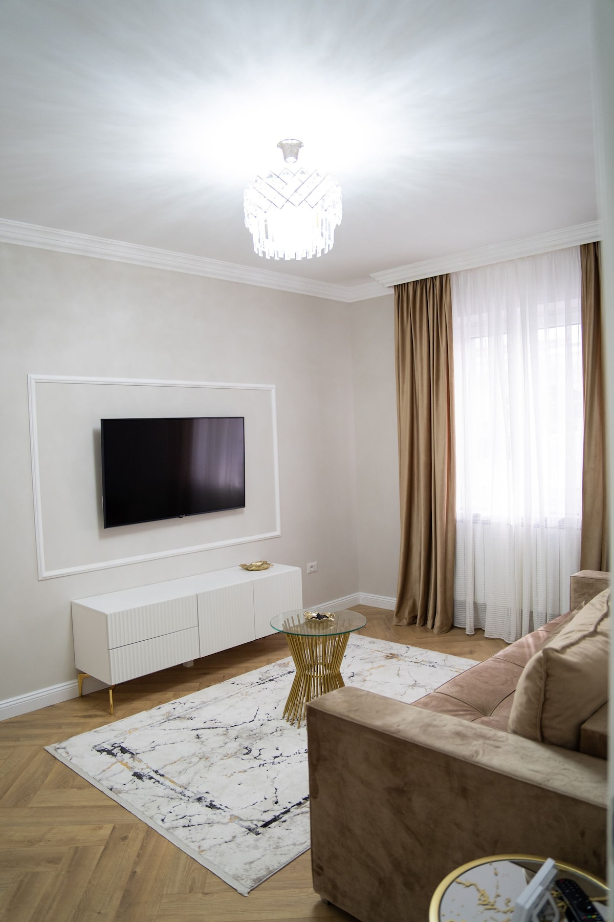 Het appartement heeft een modern, gastvrij ontwerp in warme kleuren die speciaal zijn ontworpen om een gevoel van comfort en rust te bieden. Het ligt in het ultra-centrale gebied, het centrale park bevindt zich aan de uitgang van het blok. In de directe omgeving zijn tal van instellingen zoals de prefectuur, het parket, de rechtbank, de centrale bibliotheek en Dom Polski, vestigingen van bestaande banken in Roemenië, het Museum of History, het Museum of Nature, het klooster van St. John (alle 2-5 minuten lopen)