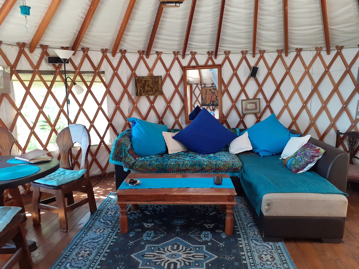 Yurt in a lovely garden with view to sea. Glamping