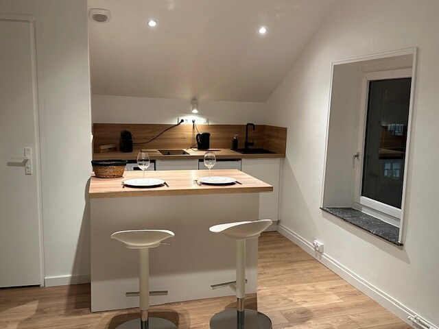 Geniet van deze charmante studio van 25 m², volledig gerenoveerd, ideaal voor solo of duo. Het ligt op de begane grond met een eigen ingang en biedt je comfort, rust en privacy vanaf het moment dat je aankomt. Deze woning is ontworpen om je thuis te laten voelen en heeft een flatscreen met Orange fiber, toegang tot tv-kanalen en Netflix. Aan de praktische kant is een volledig uitgeruste keuken beschikbaar om gemakkelijk te koken, in een altijd warme sfeer.