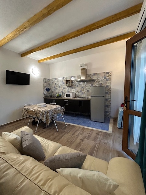 Appartement 1e verdieping , nieuw meubilair, onlangs gebouwd is van alle gemakken voorzien , op een steenworp afstand van het centrum van het dorp dicht bij alle diensten , een paar minuten met de auto van de stranden van Zuid-Sardinië. het appartement heeft alles wat u nodig heeft, beddengoed, keukenlinnen, keukengerei, koffiezetapparaat, airconditioning, muskietennetten, autoclaaf, gratis parkeren op straat.