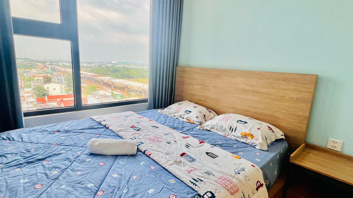 💐Welkom bij Gold's House, je perfecte uitje in het bruisende hart van Vinhomes Grand Park HCM. Mijn appartement is gelegen op de 20e verdieping van het BS7 Beverly-gebouw met uitzicht op het binnenzwembad van de oase, een spectaculair uitzicht op de rivier de Dong Nai, wat zorgt voor een rustig, ontspannend en fris landschap om je elke ochtend te verwelkomen. De appartementsruimte is van ruim en ontworpen om je comfort te bieden, met grote ramen, voldoende ruimte en een grote tv voor entertainment. Het appartement heeft een volledig uitgeruste eigen keuken waar je kunt koken