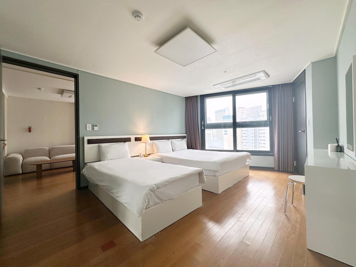 Gwangalli Beach 3 minuten • Woonkamer, kamer Gwangandaegyo Bridge View • (2 slaapkamers + woonkamer) • Gratis parkeren • Bagageopslag • 3 bedden • 20 pyeong