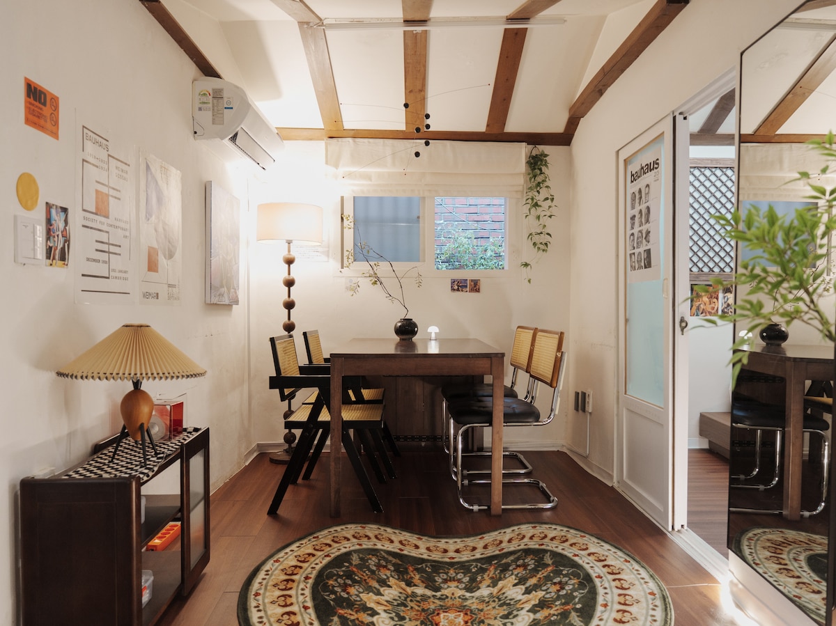 Dit is een retro emotionele accommodatie waar je alleen kunt genieten van een eigen dak, op 10 minuten lopen van Cheongnyangni Station. Het is geschikt voor sightseeing, zakenreizen en langetermijnverblijven met zowel toegang tot het centrum als een rustige woonomgeving. Zelf inchecken zorgt voor handige en gratis accommodatie. Over de ruimte Een gezellig interieur en een ruimte op het dak zijn geharmoniseerd, We hebben een rustige en nette sfeer voorbereid, zodat je de vermoeidheid van de dag comfortabel kunt verlichten. Geniet van een privé-uitje met een retro-geïnspireerd interieur. Locatie en toegankelijkheid • 10 minuten lopen van uitgang 3 van station Cheongnyangni • Gemaksvoorzieningen zoals warenhuizen, markten en bioscopen zijn beschikbaar in Cheongnyangri History • Dongdaemun, Jongno, Gwanghwamun: ongeveer 10-20 minuten zonder transfer • Apgujeong, Seongsu, Gangnam: ongeveer 20-30 minuten met de Suin Bundang-lijn Toelatingsinstructies • Zelf inchecken (niet persoonlijk, eenvoudig te gebruiken) • Het dak is een privéruimte voor alleen gasten. Een woord van de host Als host die al meer dan 30 jaar in Dongdaemun-gu woont, We begeleiden je naar lokale restaurants en buurtinformatie die niet bekend zijn bij toeristen.