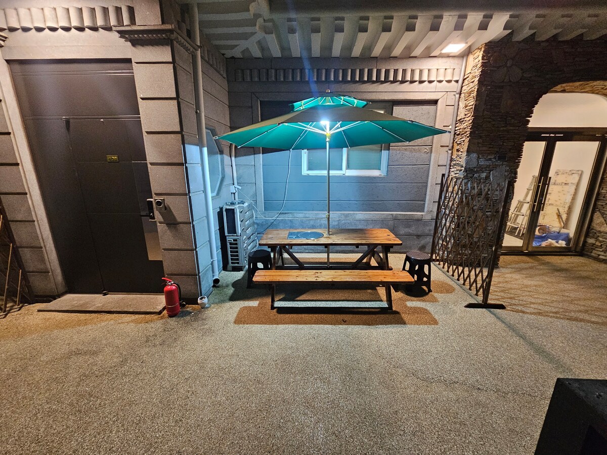 Op het dek vlak voor de woning. Geniet van de barbecue en vuurwerk😊 binnen twee minuten. Er is een reservoir. Huisdieren niet toegestaan. Instructies 🔥voor barbecue buiten Het is gratis bij self-service. Als je houtskool en grill apart nodig hebt Er wordt een toeslag van 20.000 KRW in rekening gebracht. Vraag het de gepensioneerde voor 20: 00 uur als je hulp nodig hebt! U 🔥 kan gebruik maken van de vuurplaats bij betaling van 20.000 won apart. Brandhout, ontsteker en auroragaroo zijn aanwezig. Het gebruik kan beperkt zijn op winderige of regenachtige dagen.