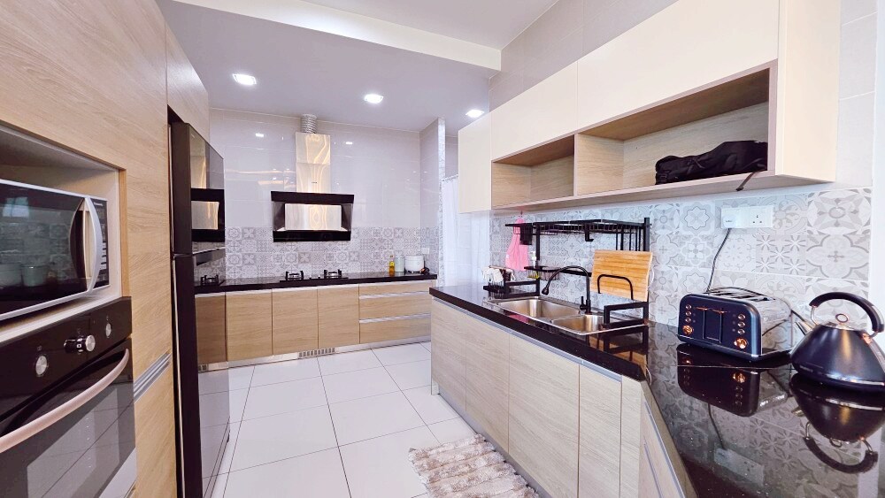 Ervaar een leuk en ontspannend gezinsverblijf in ons stijlvolle appartement in K Avenue, Kota Kinabalu. Perfect gelegen, je bent slechts 10 minuten van KK Town en Imago Shopping Mall, 8 minuten van Tanjung Aru Beach en 5 minuten van KKIA. Verken Gaya Street in 15 minuten en loop in vijf minuten naar de eetkraam van Funky Farm. Ons moderne appartement beschikt over een gezellige woonkamer, een goed uitgeruste keuken en comfortabele slaapkamers. Boek nu voor comfort en gemak in het hart van Kota Kinabalu!