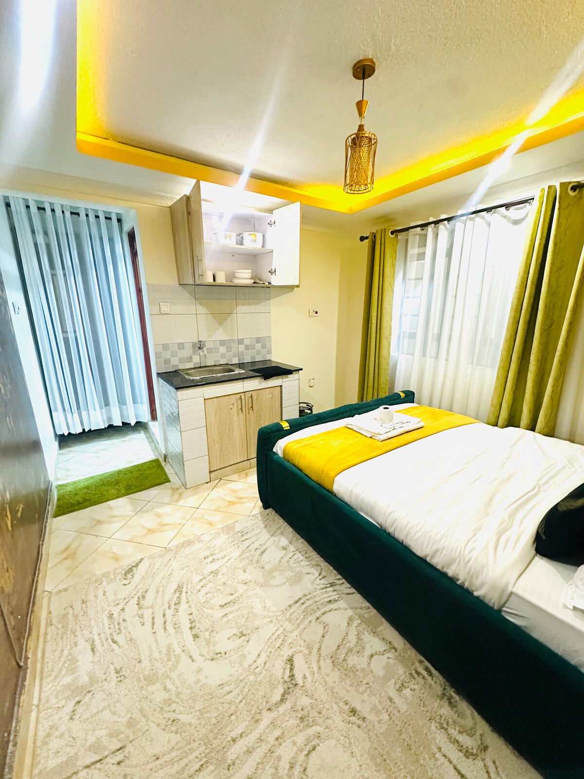 Karibu naar ons gezellige en stijlvolle studio-appartement in Fedha, Nairobi, ideaal voor korte tussenstops en langere verblijven. Gelegen op slechts 13 km van JKIA, 10 km naar de SGR, met gemakkelijke toegang tot de snelweg, biedt het comfort en gemak. De zonovergoten ruimte met een raam op het westen zorgt voor een warme sfeer. Je kunt zelfs 's avonds laat zelf inchecken met het sleutelkluisje. Er is 24/7 beveiliging in het appartement. Geniet van een kopje authentieke Keniaanse thee. Ik hecht veel waarde aan diversiteit en respect voor iedereen. Karibu Sana!