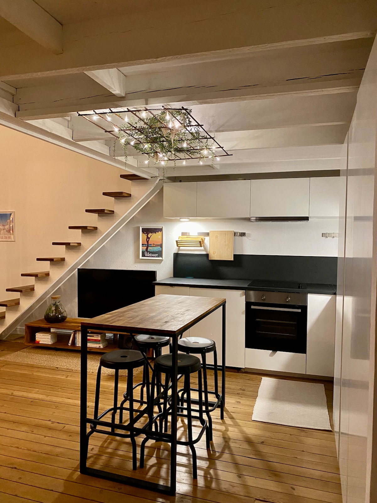 Gelegen in een zeer mooi stenen gebouw, daterend uit de 18e eeuw, is dit appartement volledig gerenoveerd in een loftstijl. Je zult de rust en het comfort waarderen, evenals de locatie in het centrum van Bordeaux. Appartement op de 3e verdieping, zonder lift. Het appartement bestaat uit een grote en aangename woonkamer van 32 m2, een slaapkamer en een duplex badkamer. Het is mogelijk om 2 kinderen te slapen op de 2 banken van de woonkamer die elk zijn uitgerust met een comfortabel matras van 80/200cm. In de grote en aangename keuken badend in licht vind je alle comfort: vaatwasser, wasmachine, oven, magnetron, inductieplaten, broodrooster en Nespresso-koffiezetapparaat. 4 openbare parkeergarages zijn in de buurt tussen de 3 en 5 minuten lopen. Let op het appartement is op de 3e verdieping zonder lift. Ik sta voor en tijdens hun verblijf ter beschikking van reizigers om de nodige informatie over de stad en haar activiteiten te verstrekken... Het prestigieuze adres van dit appartement stelt je in staat om te voet te genieten van de hele stad Bordeaux: het Gambetta-plein, de Grand Hommes en het Grand Théâtre, maar natuurlijk ook musea, winkels en restaurants. Je profiteert van alle openbaar vervoer (bus en tram) in de directe omgeving van het appartement, evenals luchthavenshuttles, taxi 's en openbare parkeergarages. Het ligt op 10 minuten met de tram van treinstation Saint Jean. We bedanken onze gasten voor het respecteren van de rust van de plek, ons appartement is niet geschikt om te feesten.