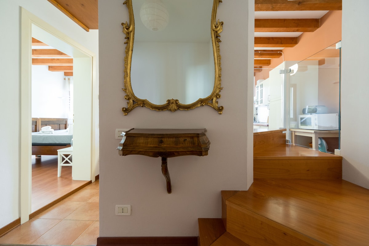Onlangs gerenoveerd appartement op de eerste en tweede verdieping van een oud gebouw. Het huis is gelegen in een woonwijk en centrale wijk van Venetië, in een zeer rustige binnenplaats, weg van het intense toeristische verkeer. Je wordt ondergedompeld in de Venetiaanse sfeer! De overloop, letterlijk op een boogscheut van de voordeur, maakt het heel gemakkelijk om het appartement vanuit elke richting te bereiken met een watertaxi. Houd het simpel in deze rustige, centraal gelegen accommodatie.