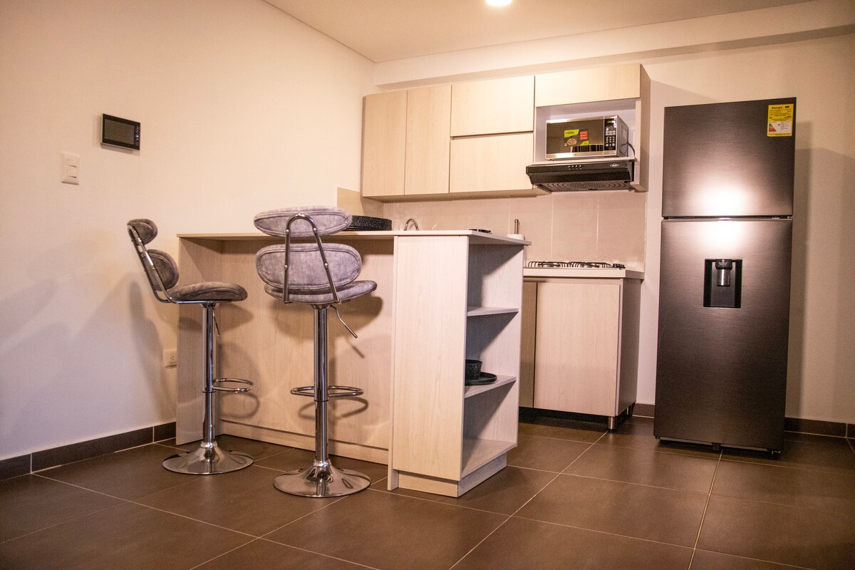 Relax and enjoy a comfortable and modern space. Watch your favorite movies or series on a 4K TV without leaving the bed. Share a glass of wine on the balcony while admiring a beautiful view of Pereira. You’ll be just steps from Circunvalar, surrounded by restaurants, cafés, and bars. Explore the Coffee Region with our guidance. The building offers a pool, washer, dryer, and an ideal location close to Megacentro Pinares.