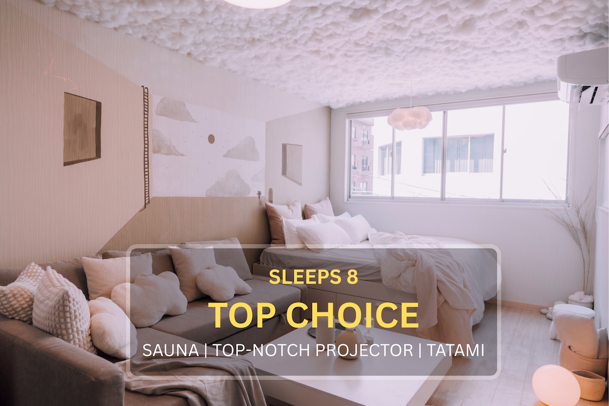 Dit nieuw gebouwde appartement ligt pal naast Nihonbashi Shopping Street en op 5 minuten lopen van het station.Er zijn veel restaurants, supermarkten en elektrische winkels in de buurt, waardoor het erg handig is. Het is uitgerust met een eigen sauna om je te helpen rusten van je reizen. 1. Nieuwbouw appartement, gunstige locatie 2. Er is snelle wifi beschikbaar 3. Ruime kamer 4. Een comfortabele ruimte met dubbele vlambestendige gordijnen met uitstekende lichtblokkering, isolatie en geluidsisolatie 5. Ondersteun een comfortabele nachtrust op het matras van het merk N-slaap 6. Volledig uitgerust: keuken, magnetron, koelkast, wasmachine, waterkoker, kookgerei 7. 43inch smart-tv met streaming voor Netflix, YouTube, enz. 8. Sauna alleen voor persoonlijk gebruik * Er zijn belangrijke kookgerei, potten, theekommetjes en messen, maar kruiden worden om hygiënische redenen bereid. 9. "Een set handdoeken per persoon (gezichtshanddoek en lichaamshanddoek), een extra set voor een verblijf van een week of langer" Geniet ten volle van dit gemak en comfort met je gezin.