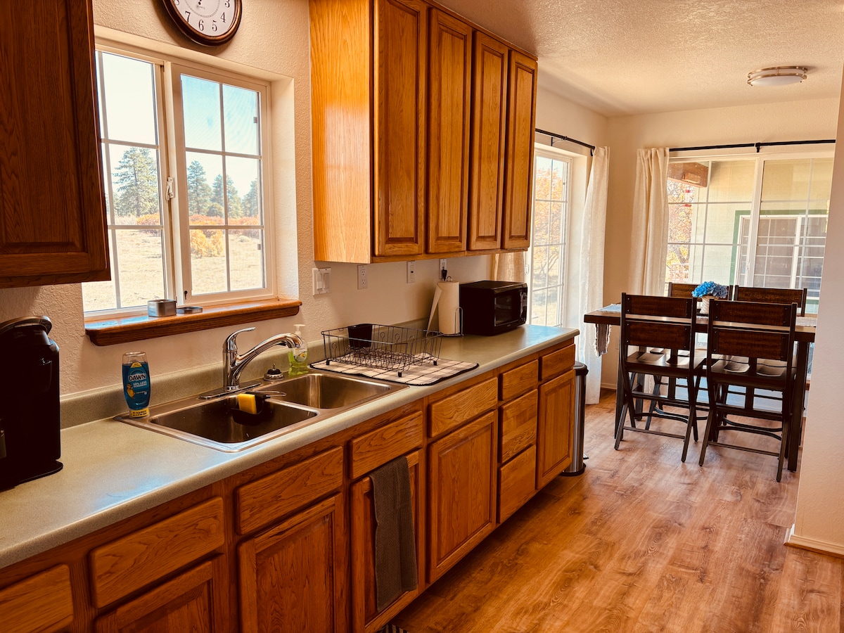 Beautiful cabin in a peaceful country setting yet only 12 miles north of Cortez & 10 miles west of Dolores. Relax on the porch swing & Adirondack Chairs on the front porch or at the bistro table and chairs on the side porch. Comfy mattresses & pillows (all linens are 100% cotton) for a good night’s rest & give you energy to explore the Four Corners. Slate floors, granite counters, fully equipped kitchen, full sized washer and dryer and much more to make your stay a great home away from home!